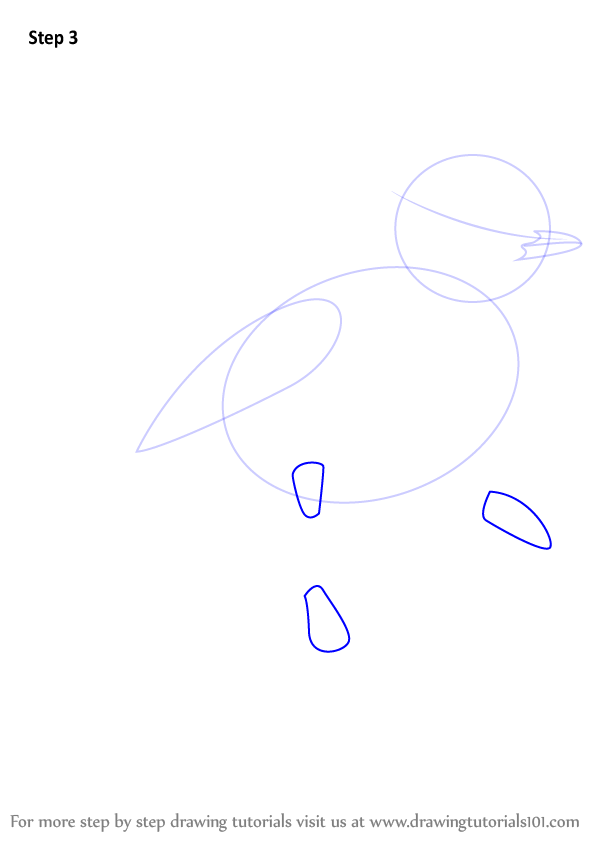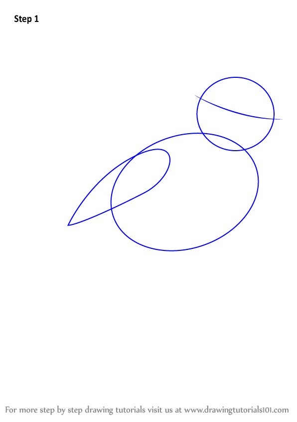 Begin with drawing a large oval, a wing shaped oval and a small circle.