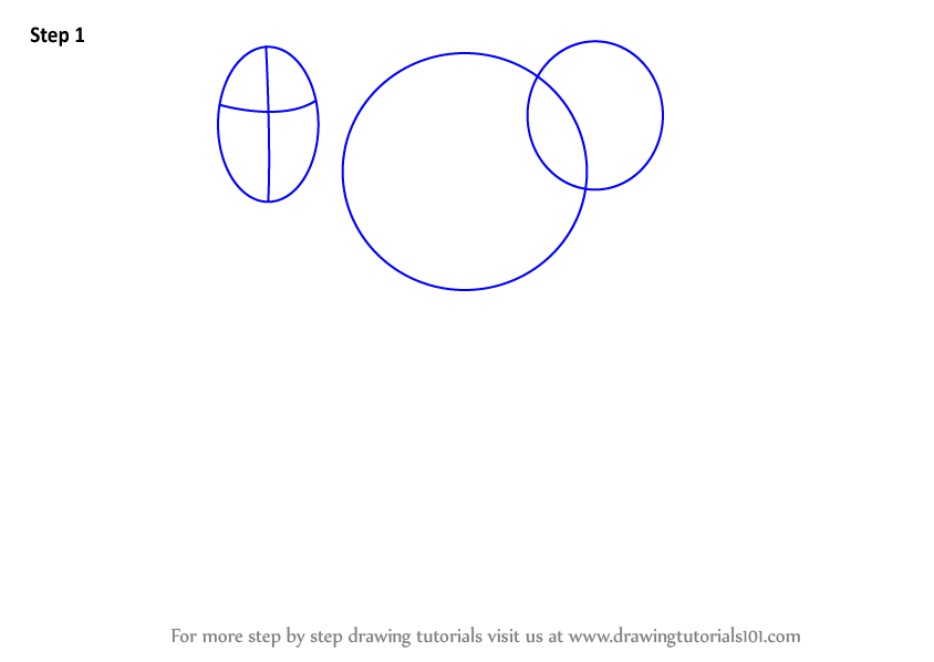 Begin with the base for its face, draw two small circles and one large in the center.