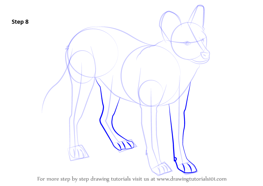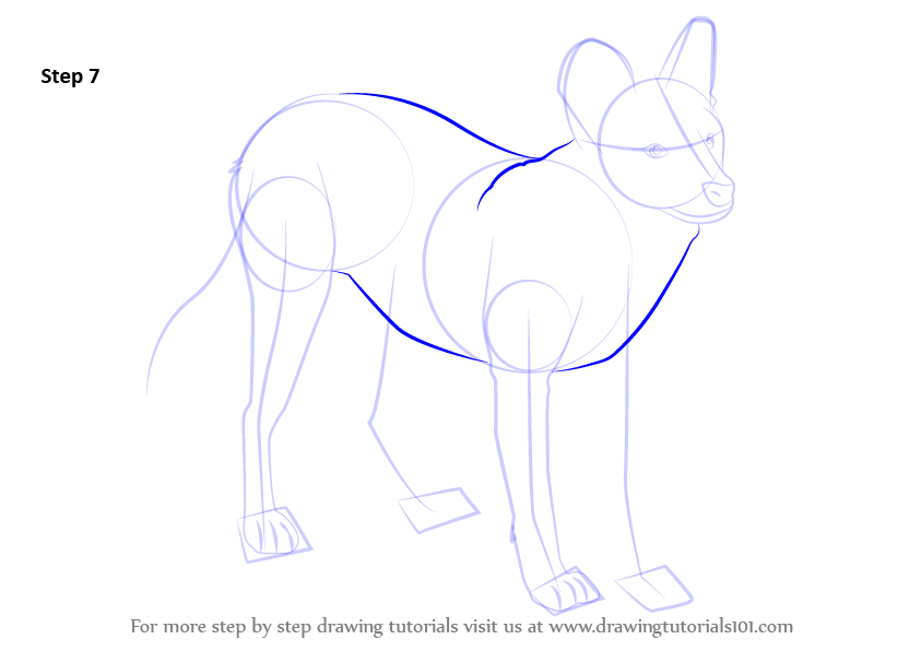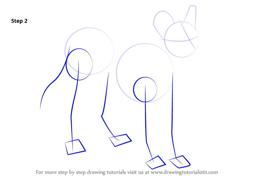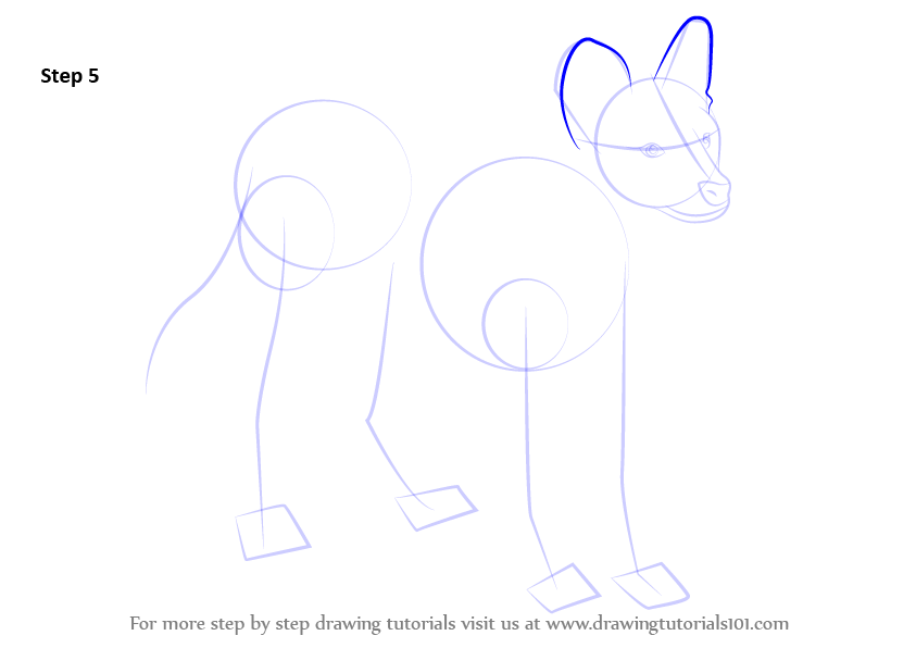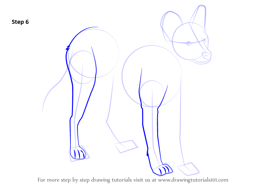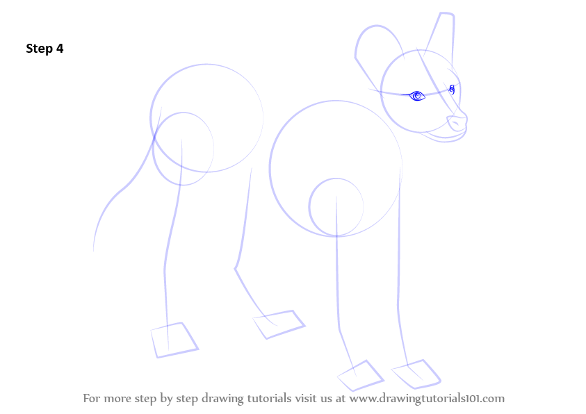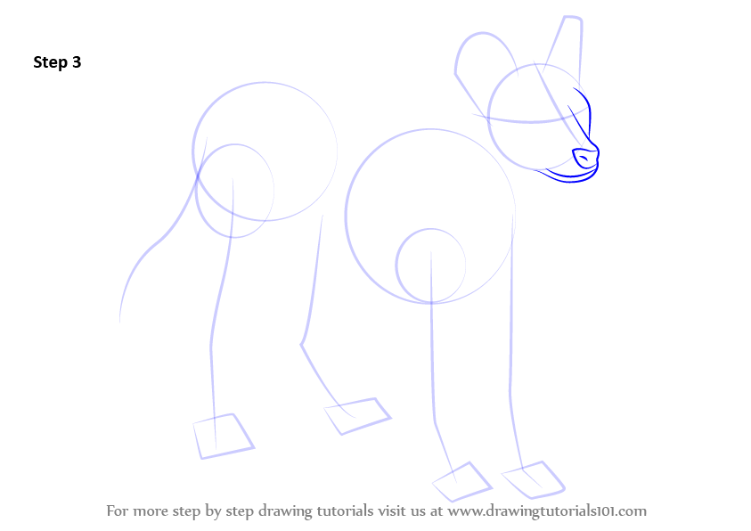 Draw outline for arms, hands, legs, feet & tail.