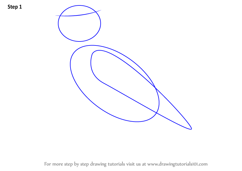 Begin with drawing a large oval, a small circle and an outline for the wings.