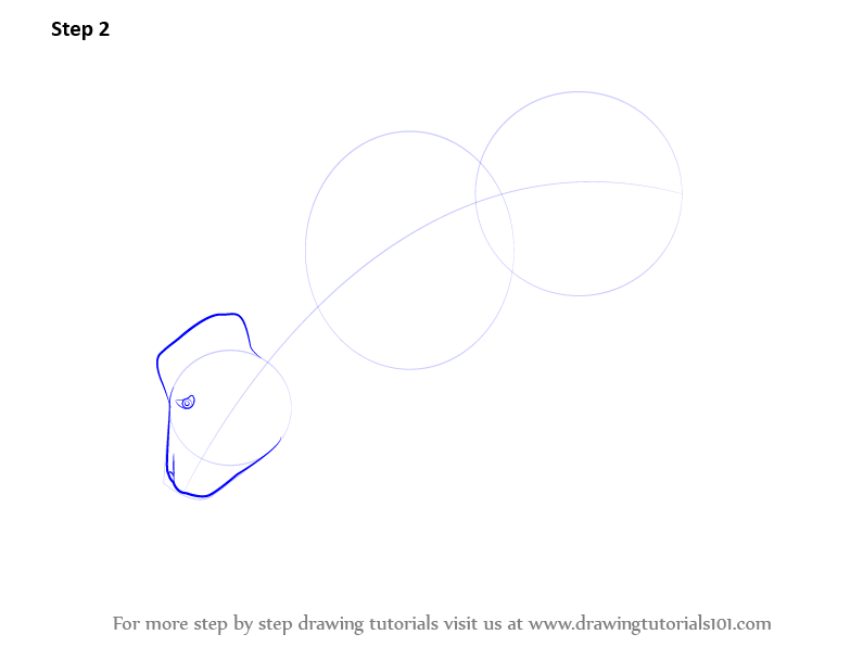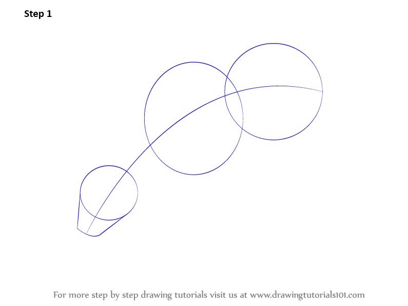 Begin with drawing a line and three circles - two medium and a small in size