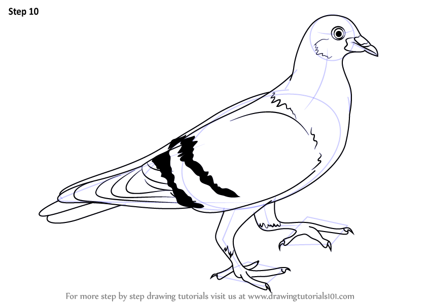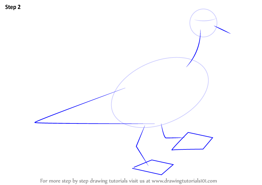 Draw outline for beak, tail, legs, feet & neck.
