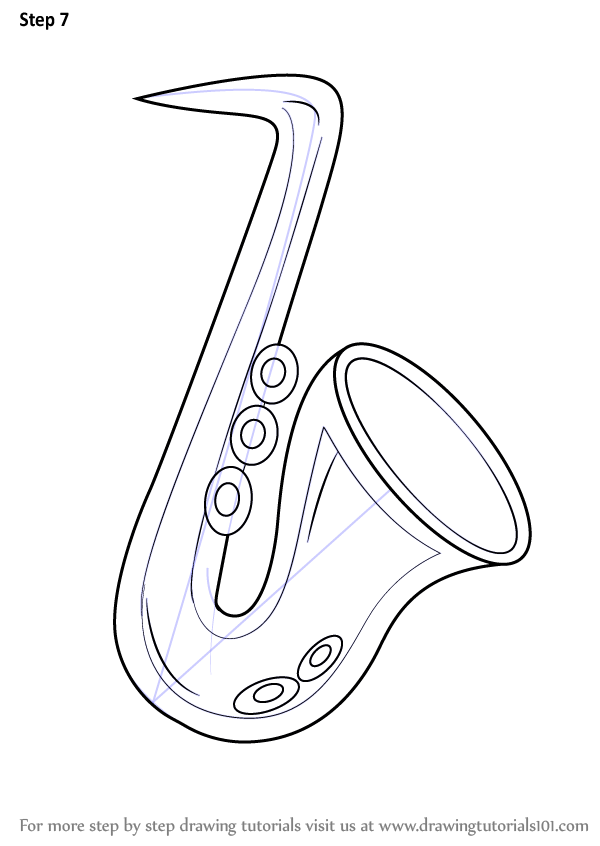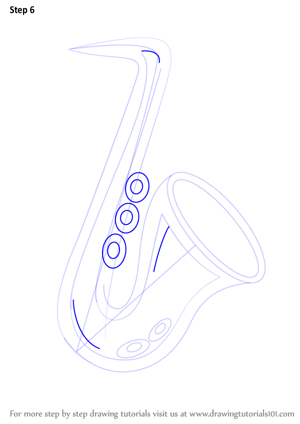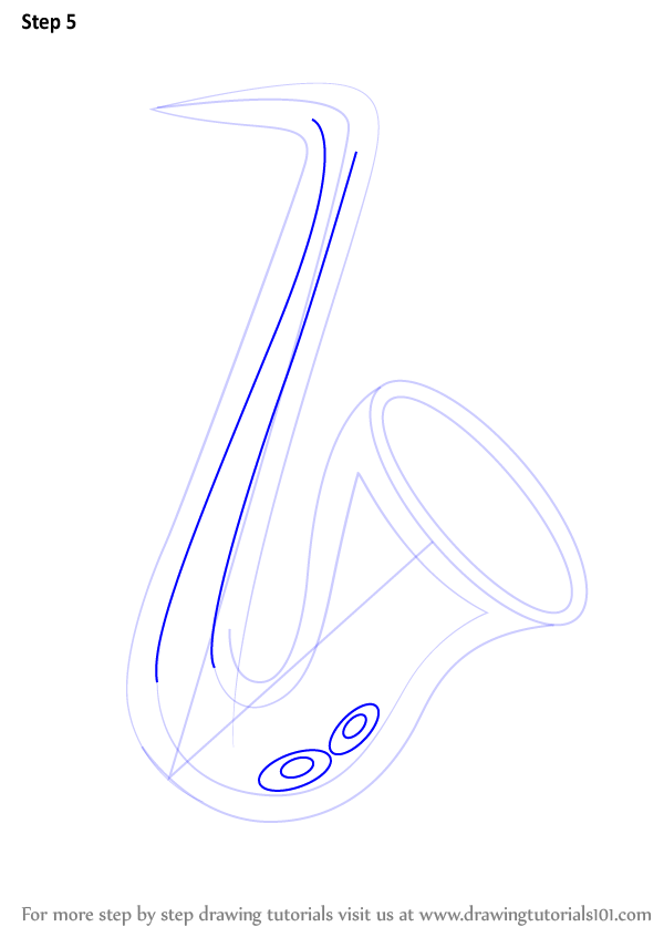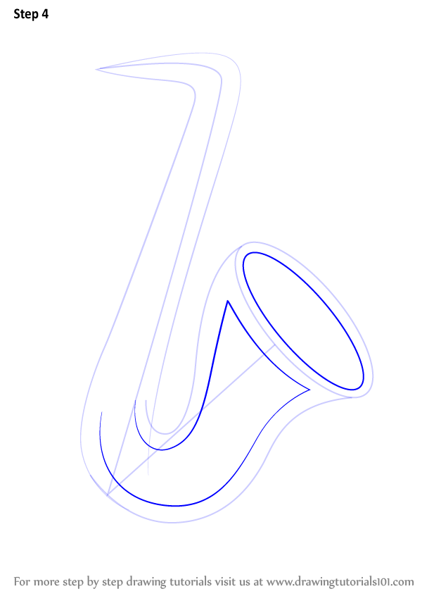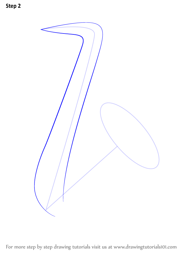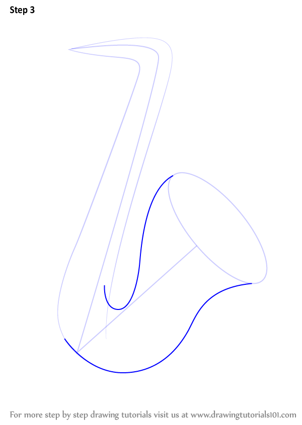 Draw an oval & inner edges of the saxophone shape as shown.