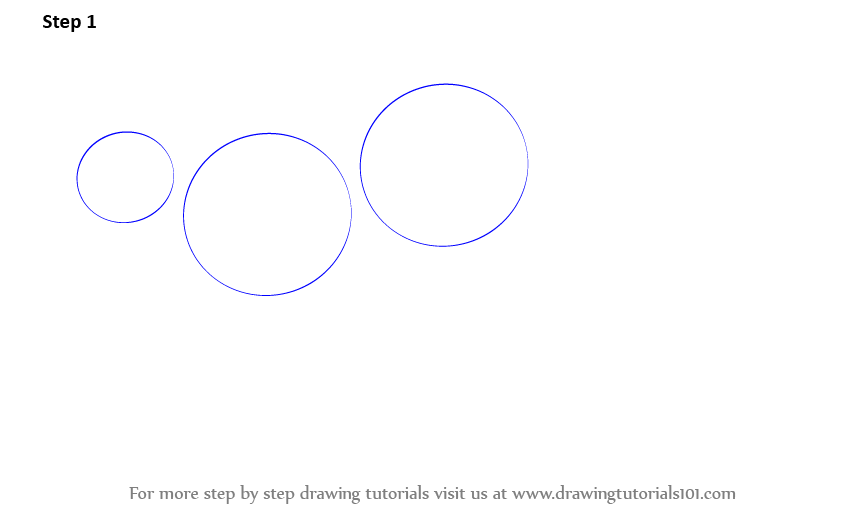 Begin with drawing three circles, two medium and a small one!