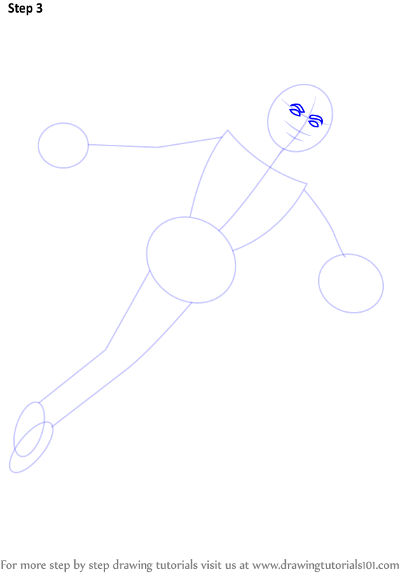 Begin with a base for his body and draw two ovals along with two other medium circles