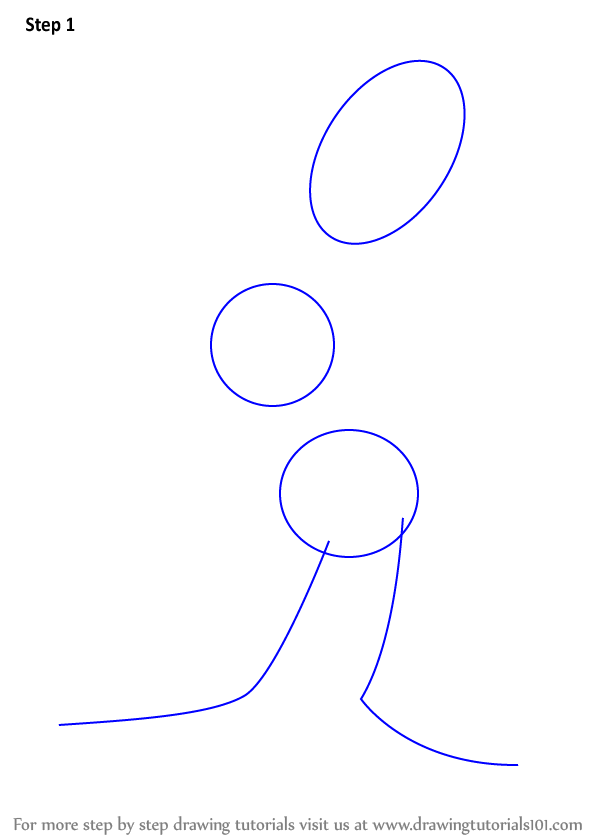Draw a big oval along with two circles and lines for the legs.