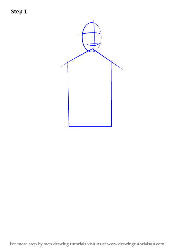 Start the work by drawing an oval, four lines & shape for the upper body.