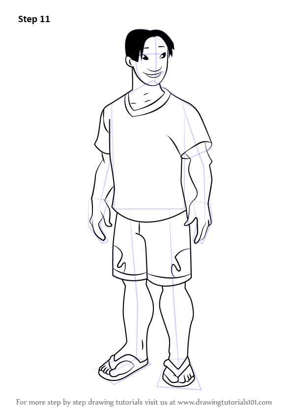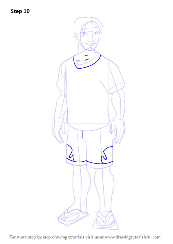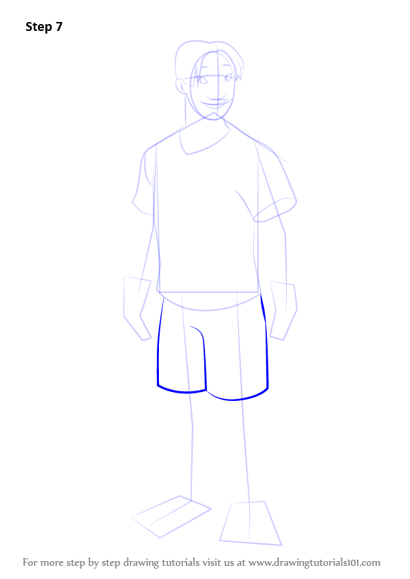 Enhance shorts by making numerous lines over it. Also draw shirt's outline near the neck.