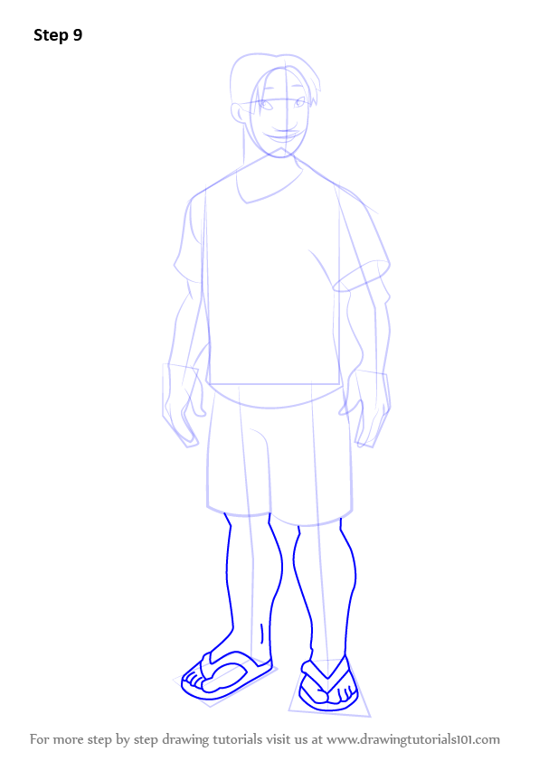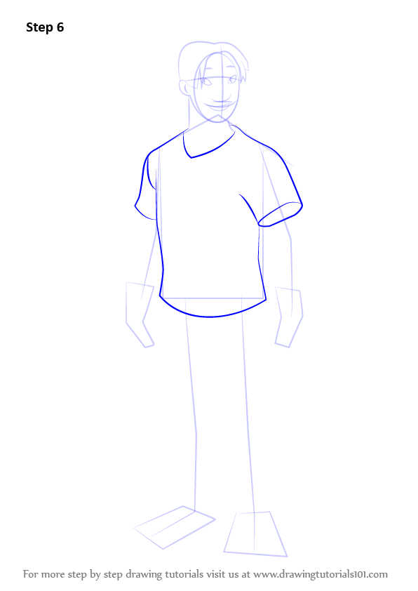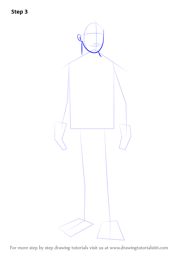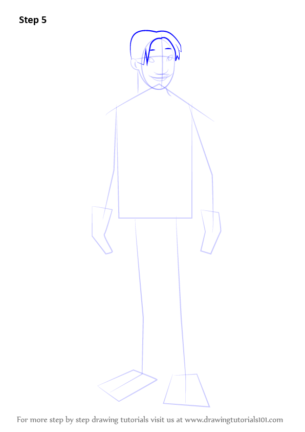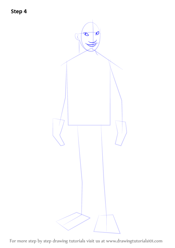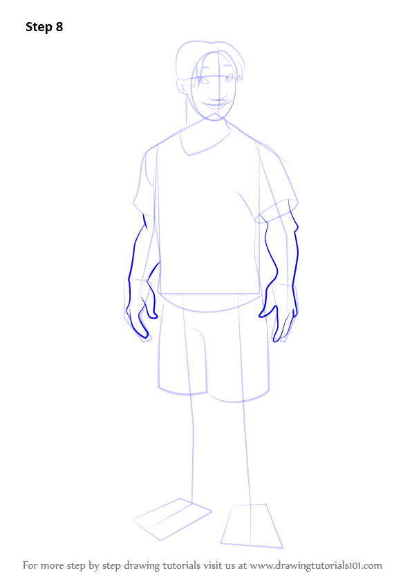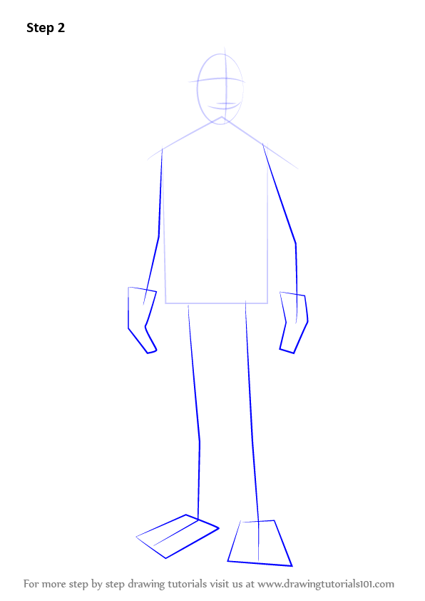 Draw outline for arms, hands, legs & feet.