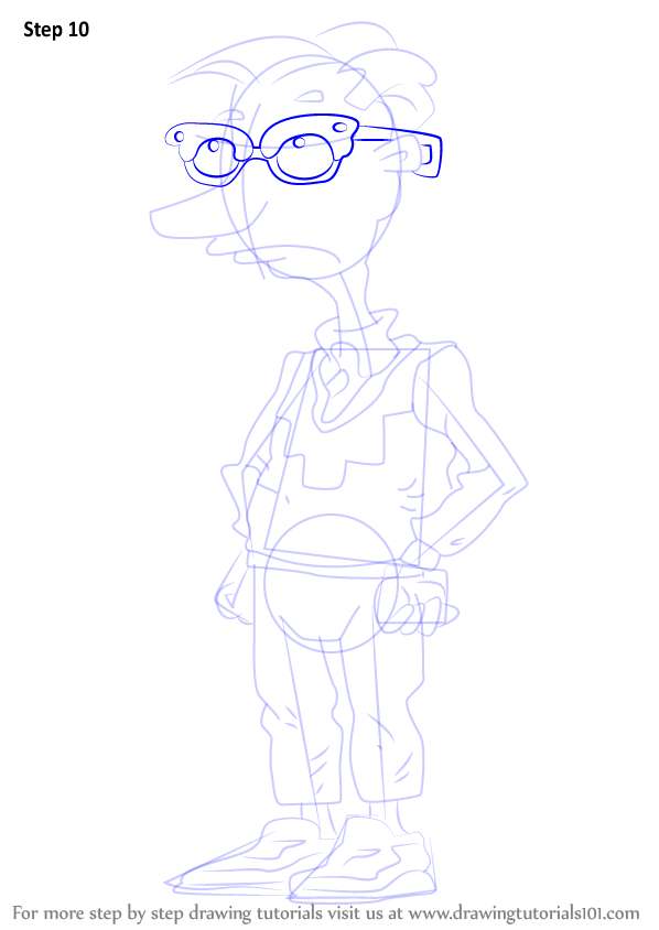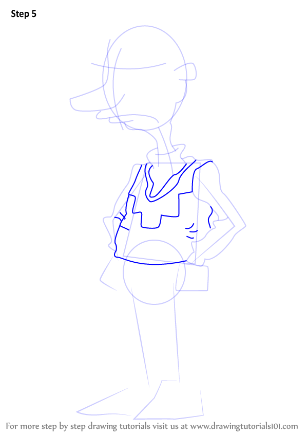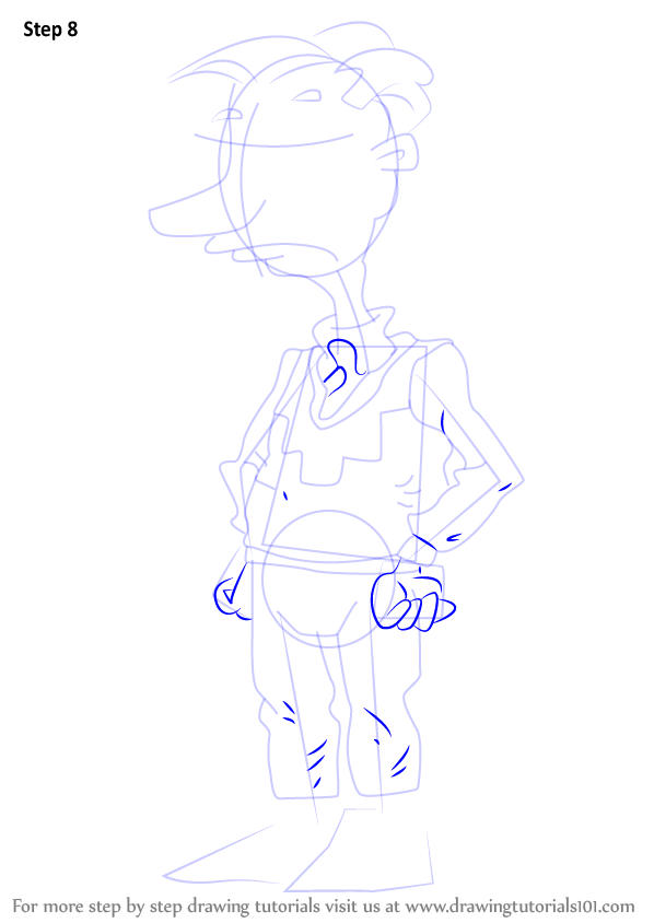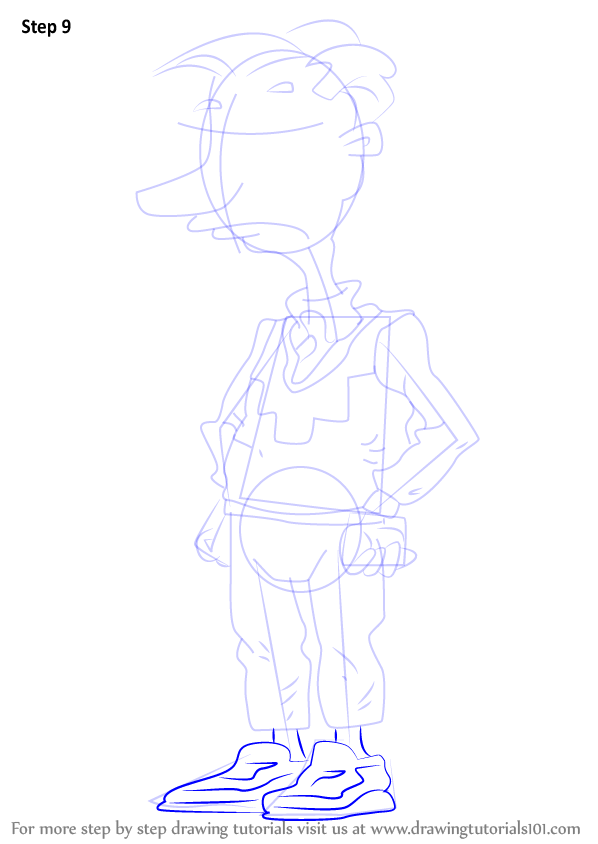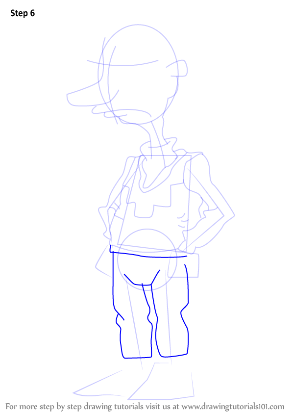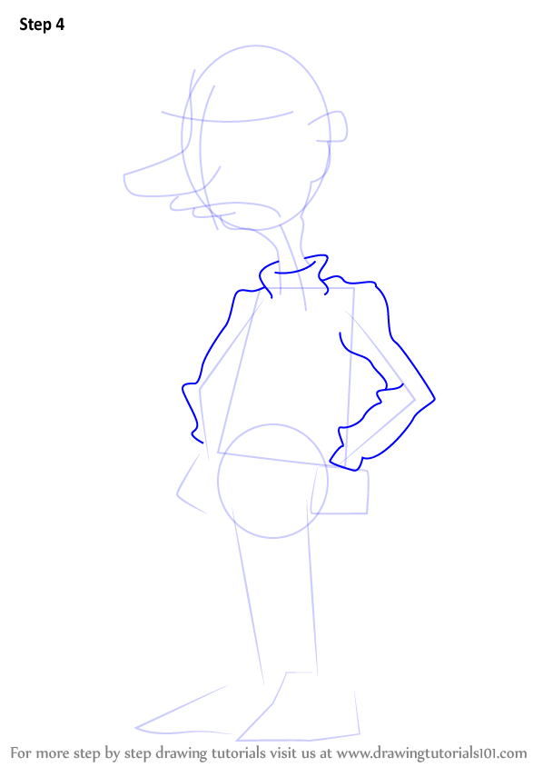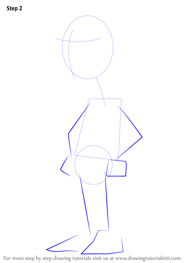 Draw outline for arms, hands, legs & feet.