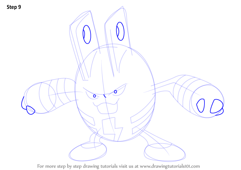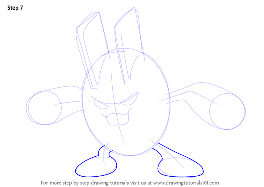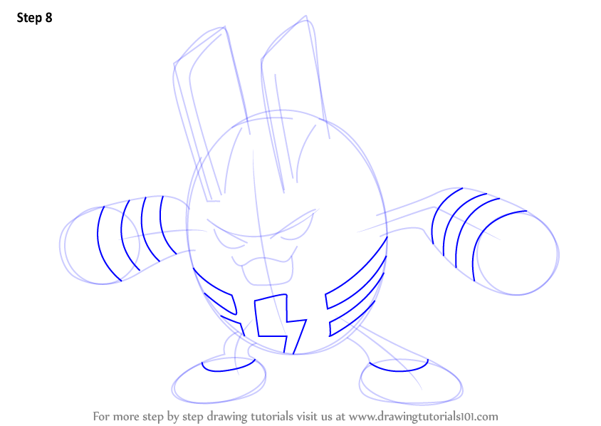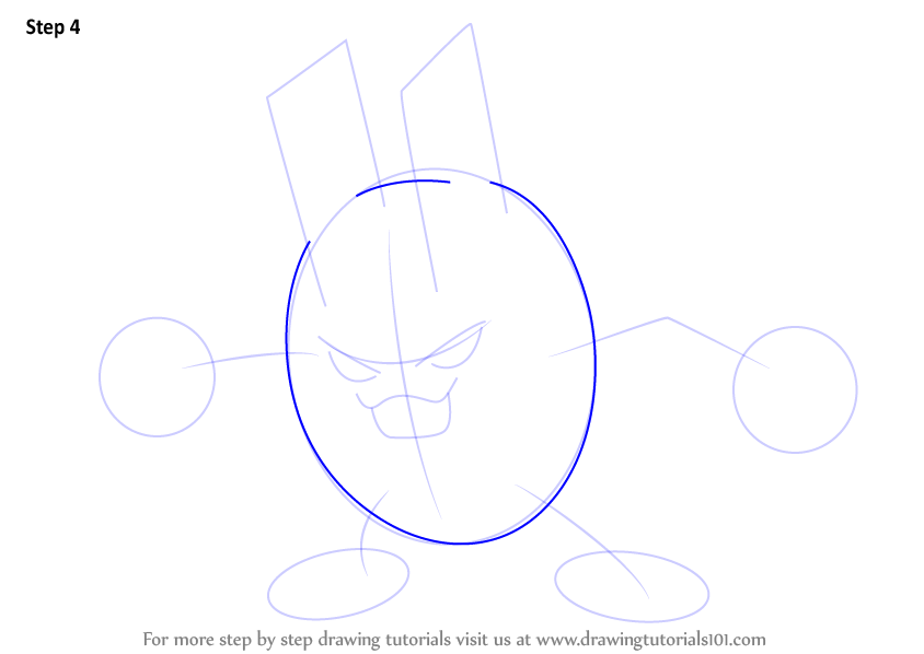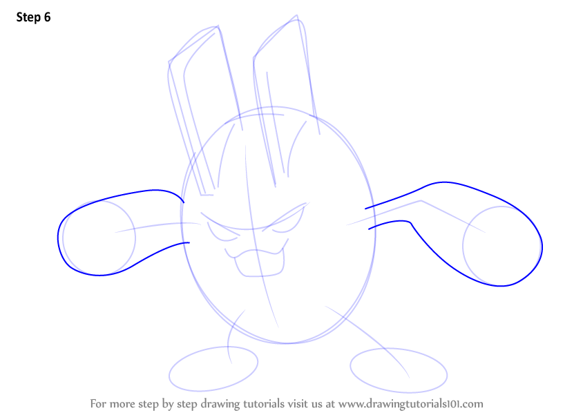 Draw retinas & rounded shapes over the ears and hands as shown.