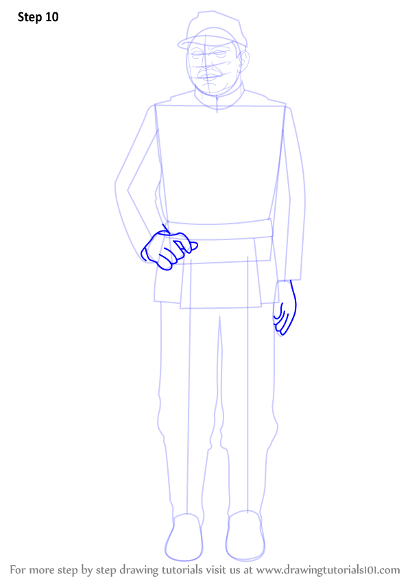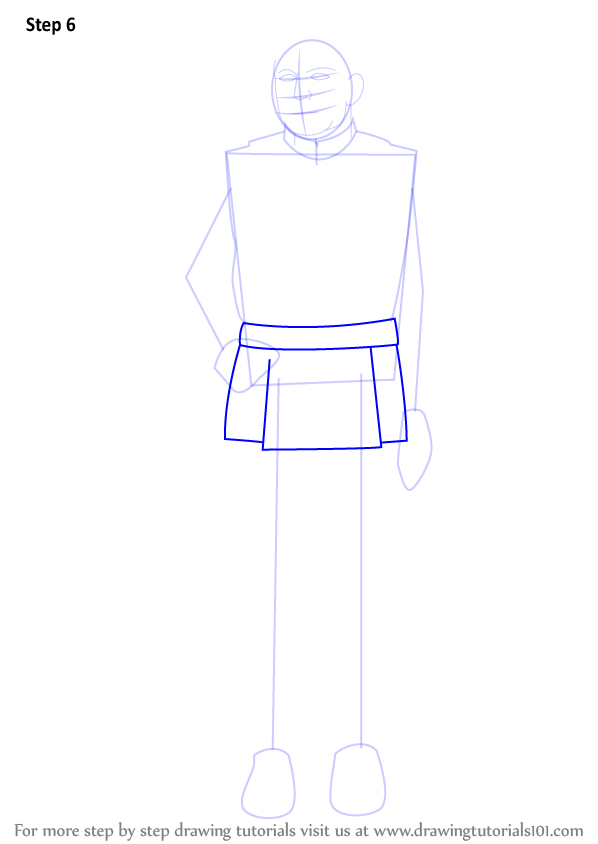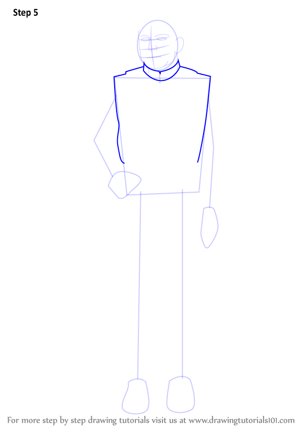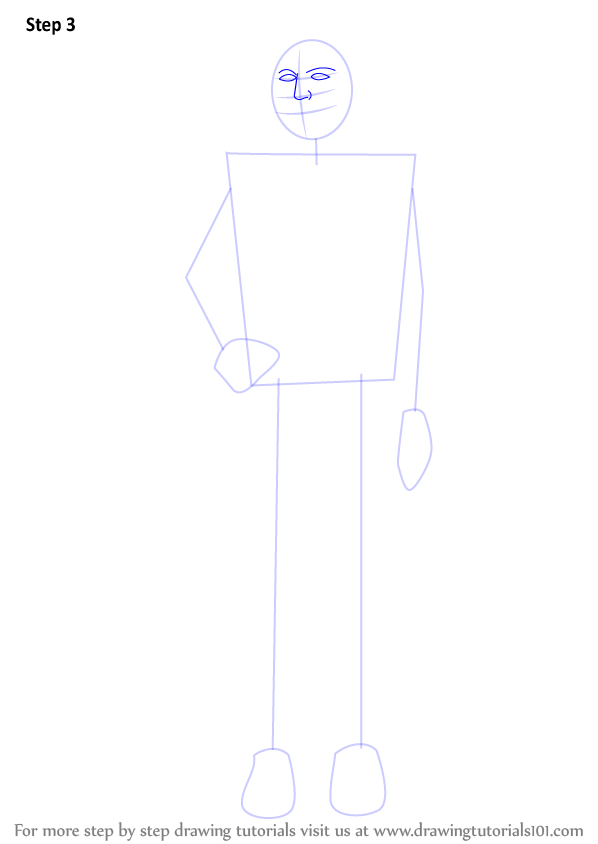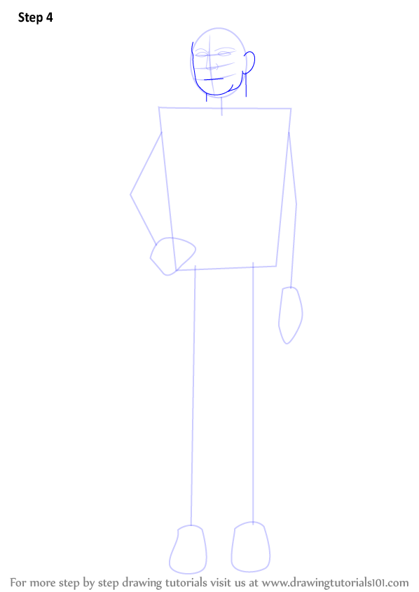 Draw outlines for arms, hands, legs & feet.