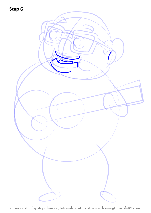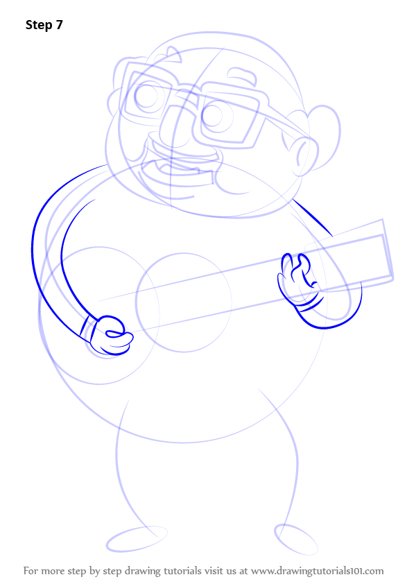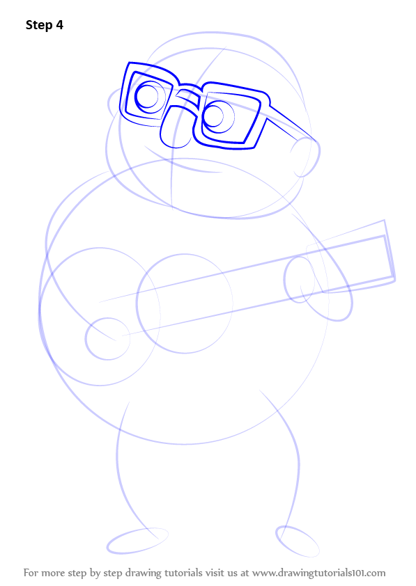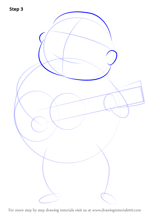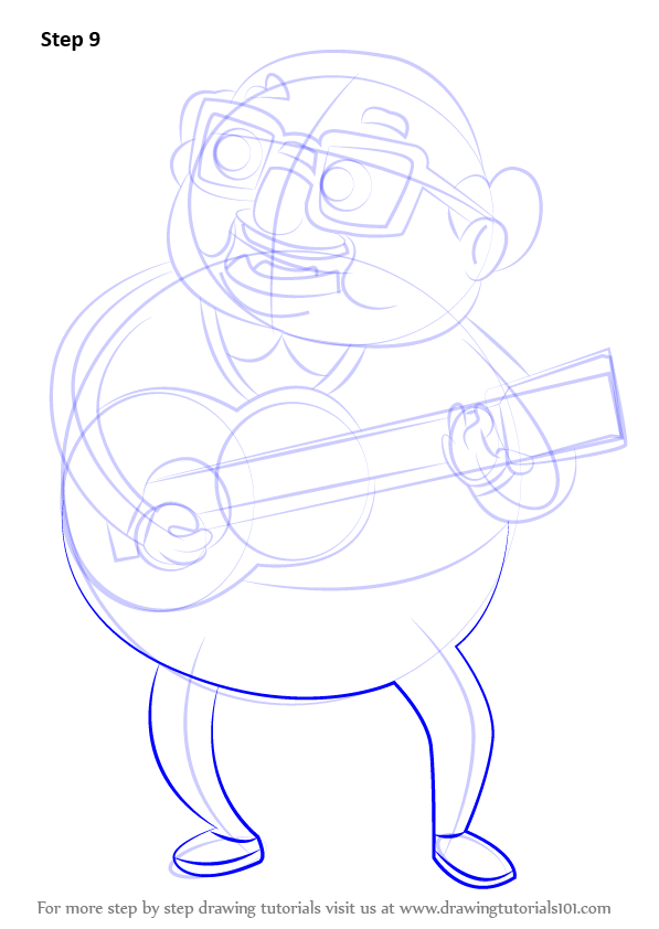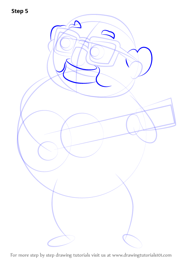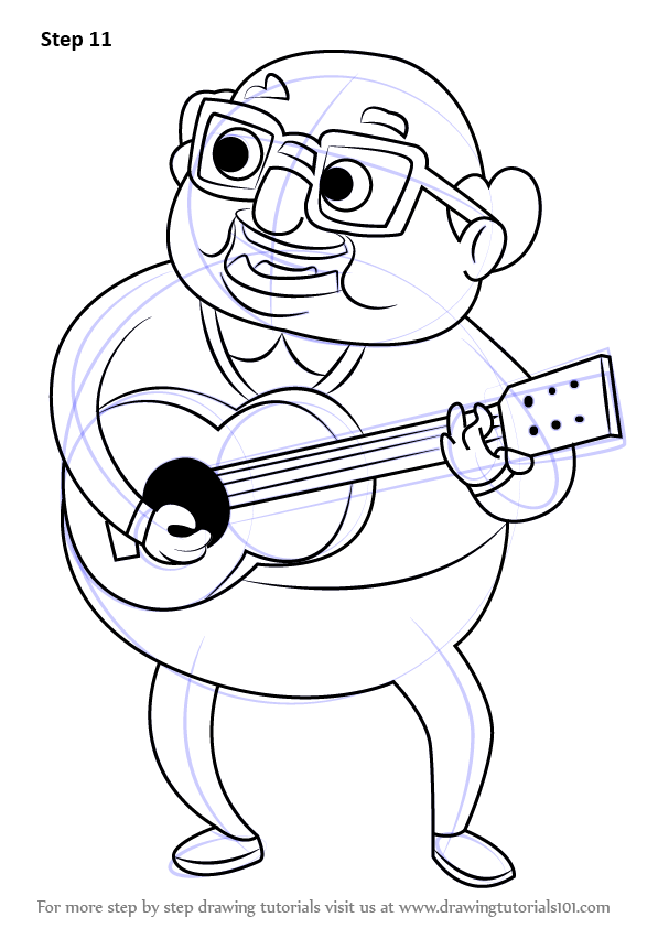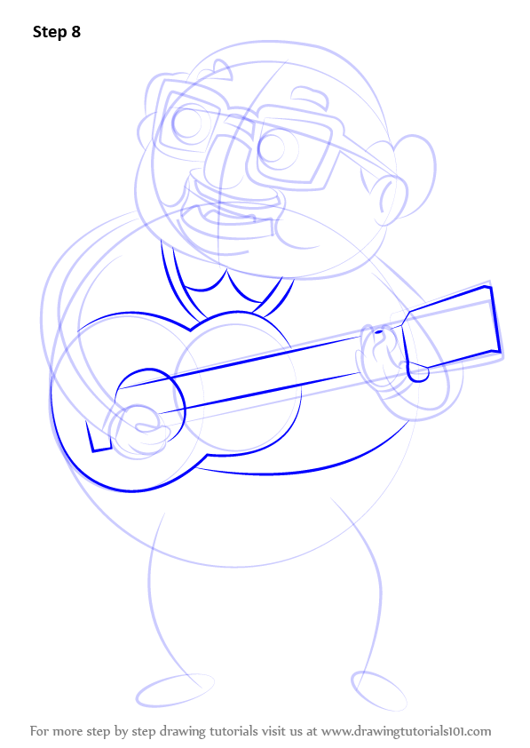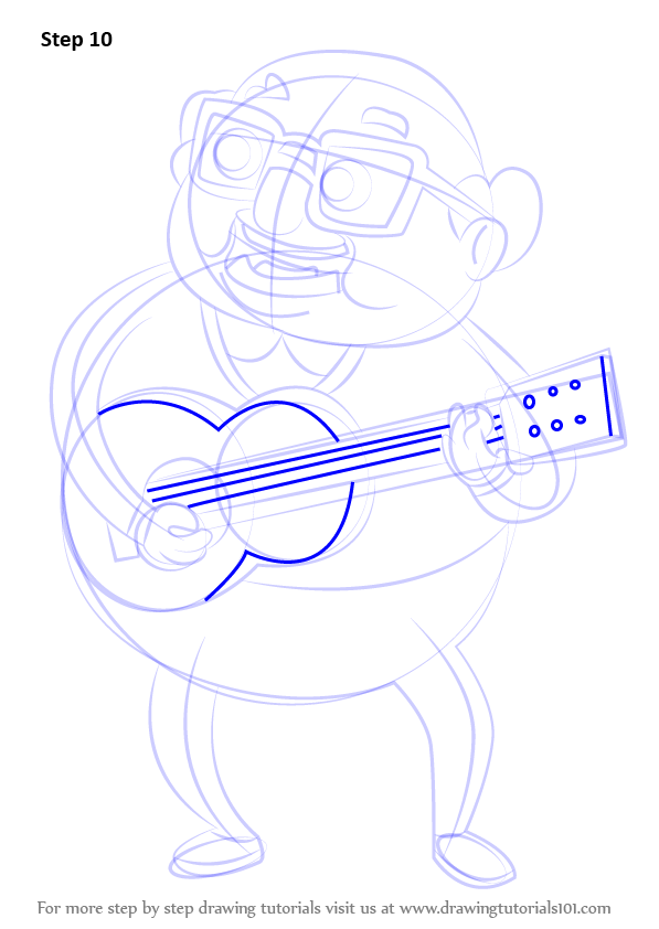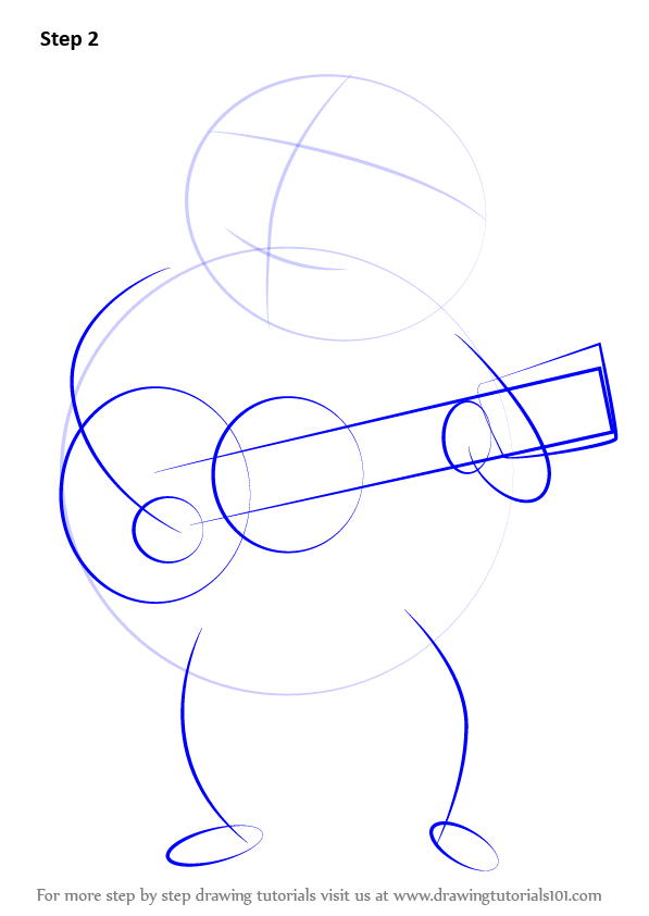 Draw outline for arms, hands, legs & feet & guitar shape as shown.