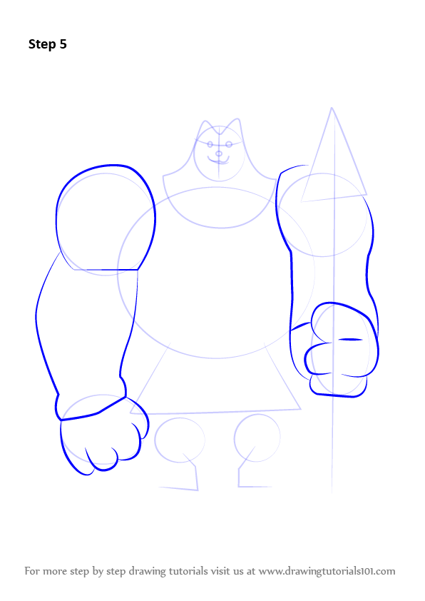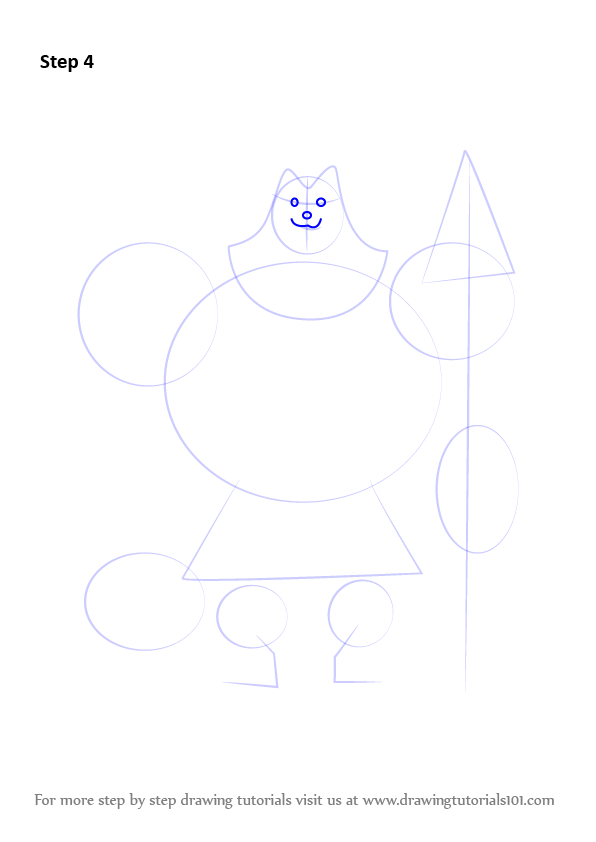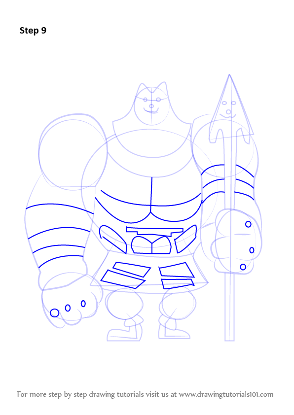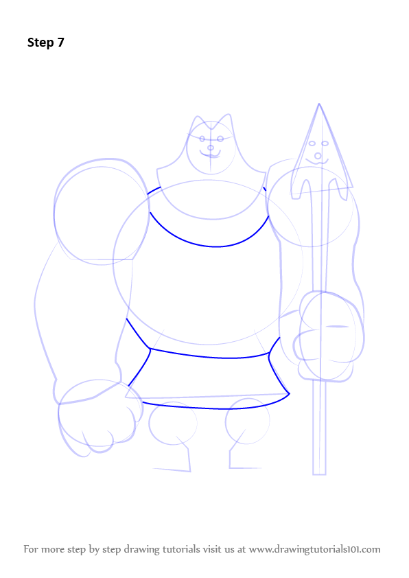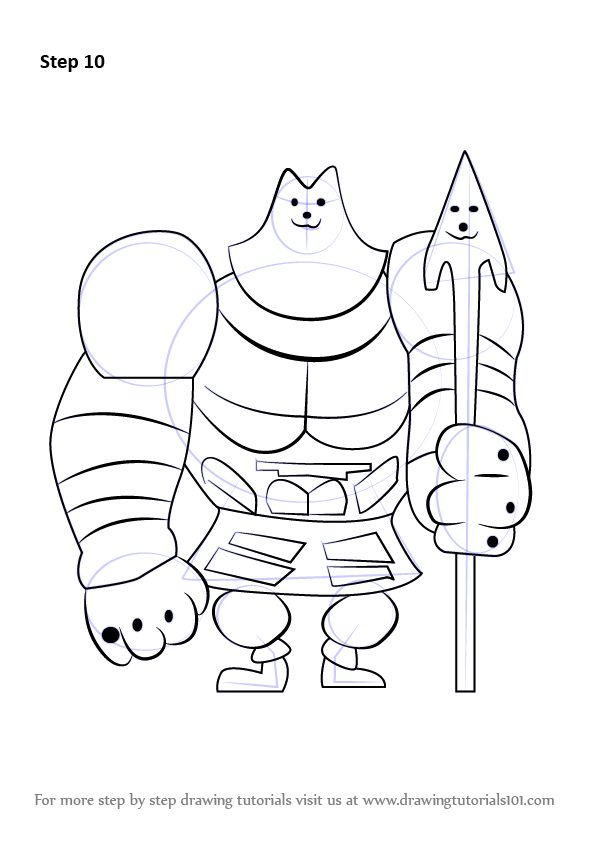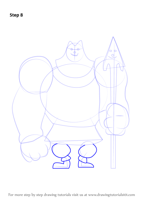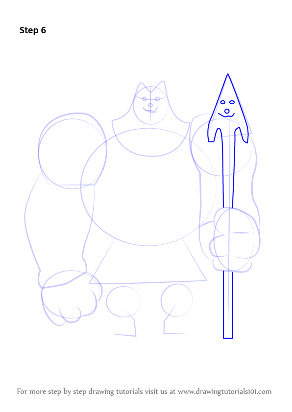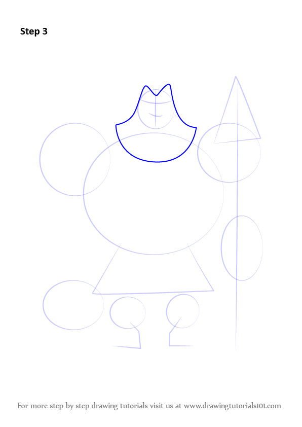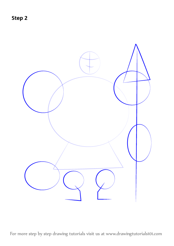 Draw six ovals & draw outline forlegs & weapon.