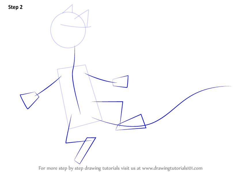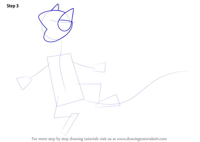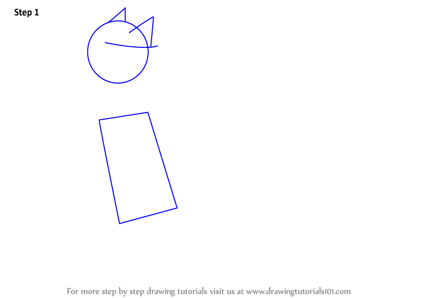 Start the work by drawing a circle, a line & a triangle. Also draw outline for ears.