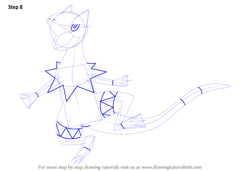 Draw retinas & star like shape around the neck as shown. Also draw triangle like shapes over the legs.