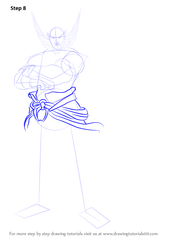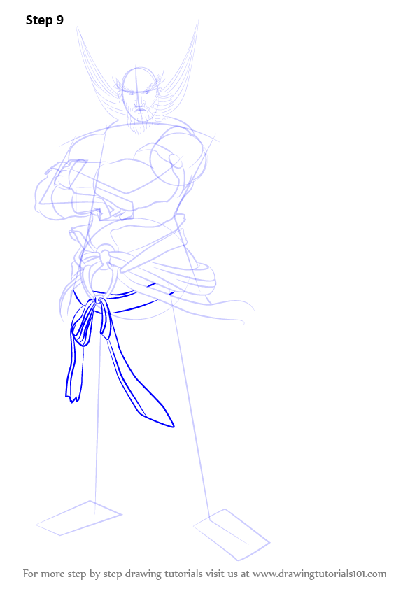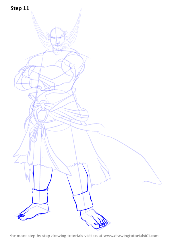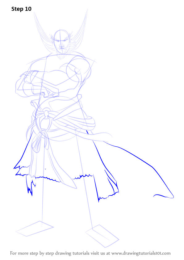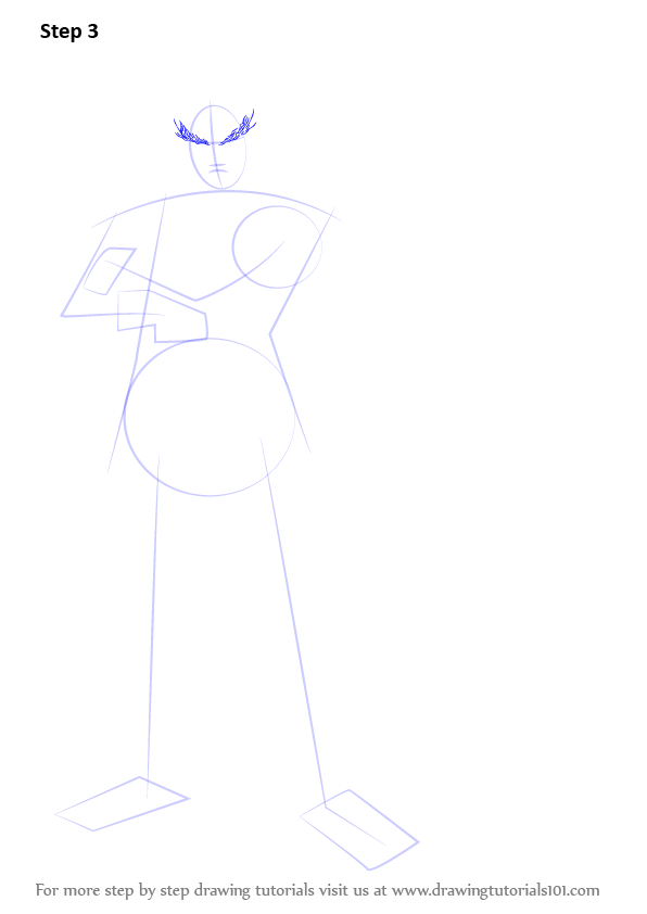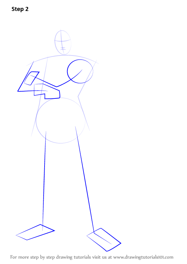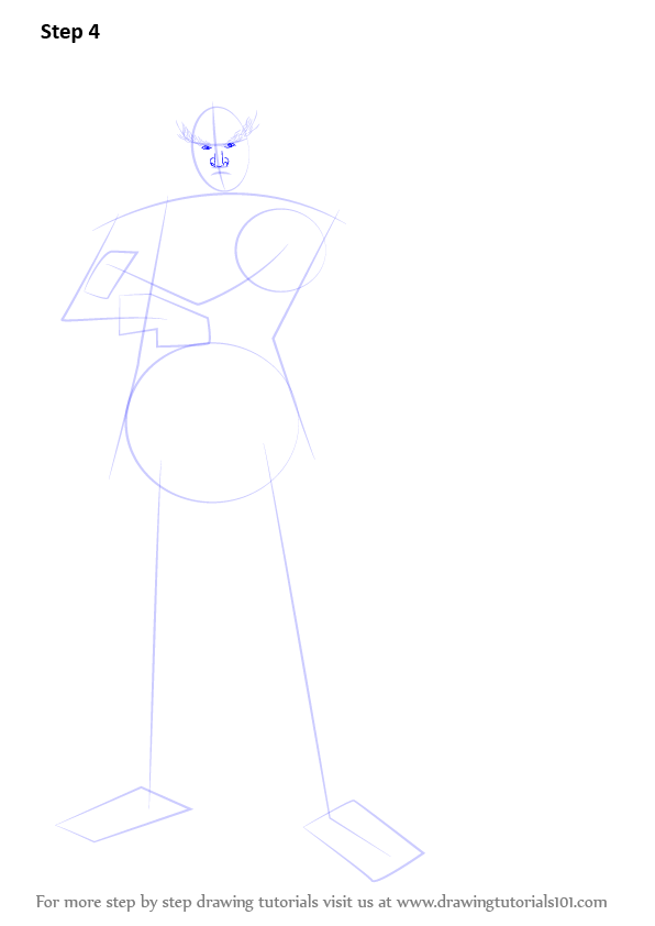 Draw outline for arms, hands, legs & feet.