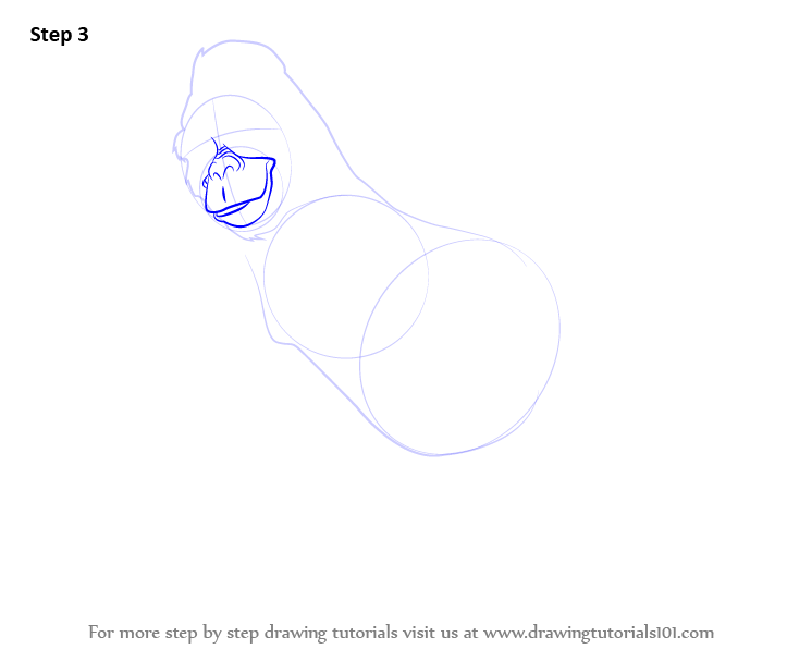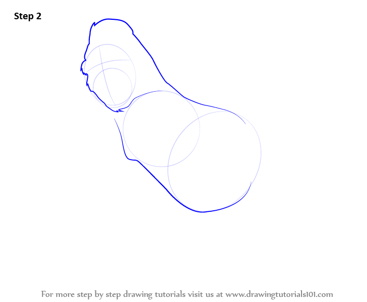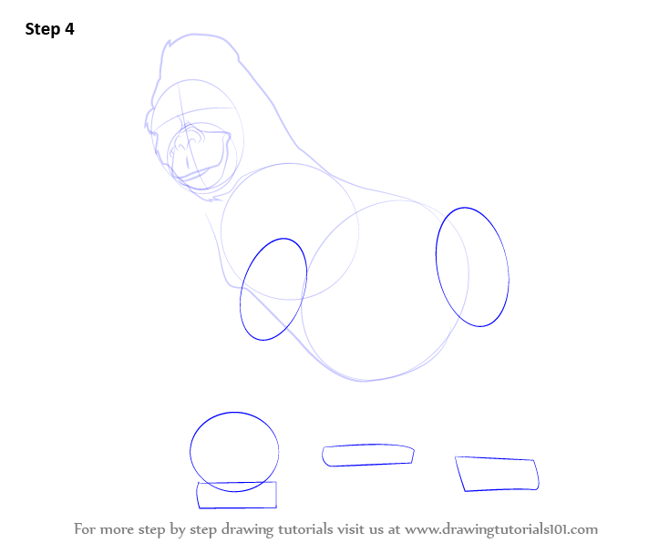 Draw the two ovals and three circles along with three rectangles for the legs and the feet