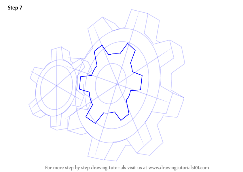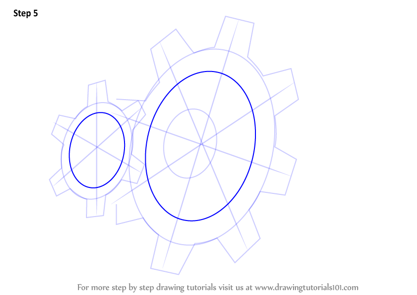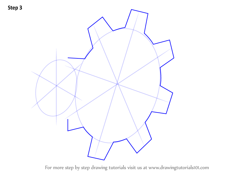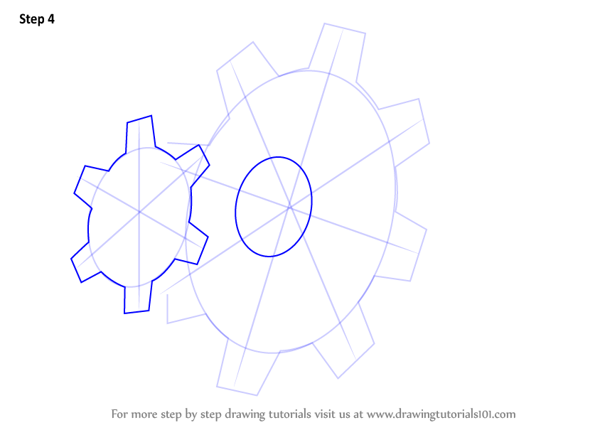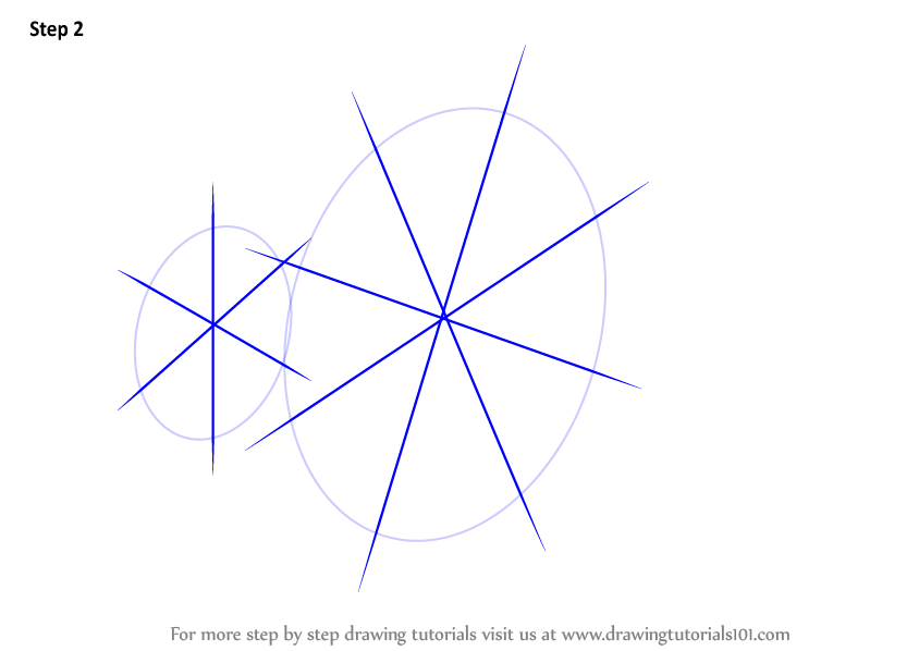 Draw three lines over the small oval and four lines over the large oval as shown.