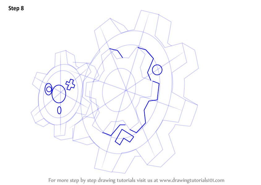 Draw inner outline of the klang. Also draw plus sign and three small circles inside the tiny klang as shown.