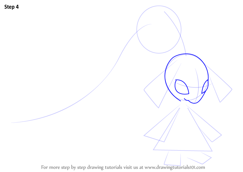 Draw lines over the dress and hairs as shown.