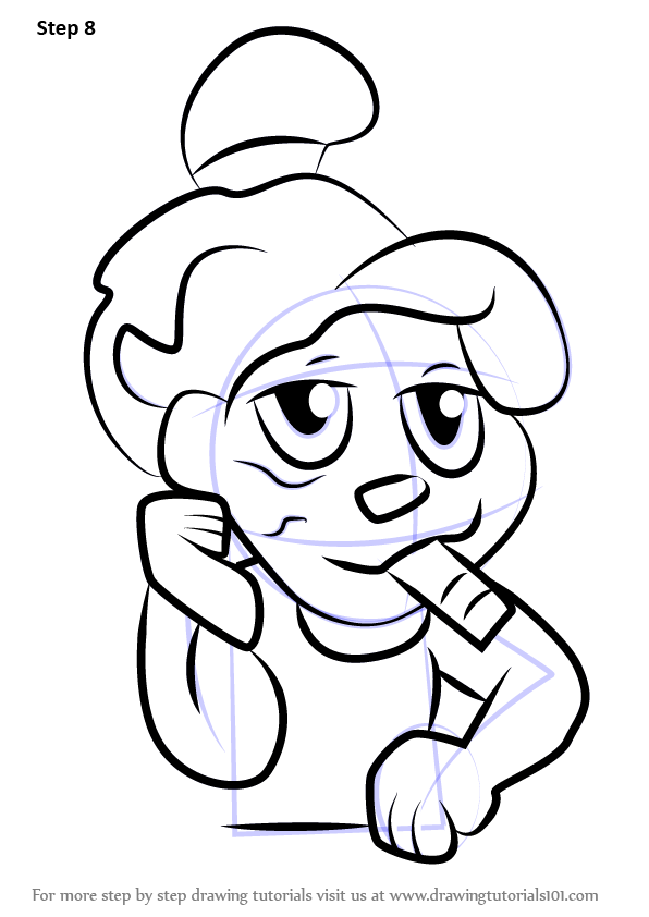 Draw cigarette shape as shown & lines over the face and dress as shown.