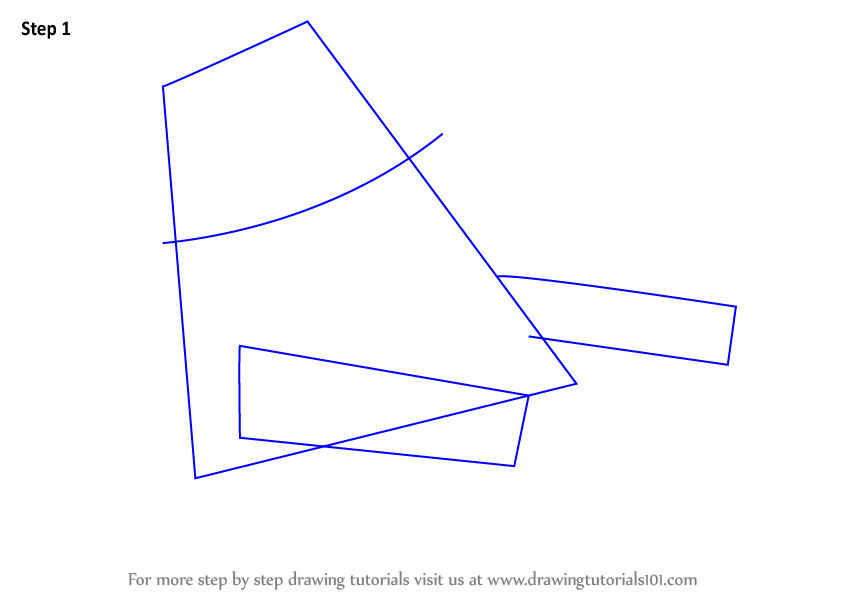 Start the tutorial work by drawing four point shape, a curve line & two flat rectangles as shown.