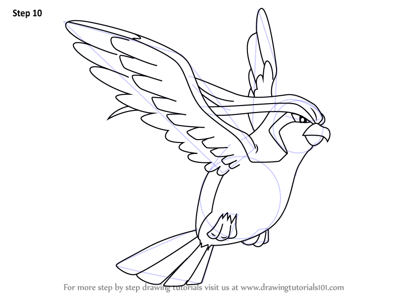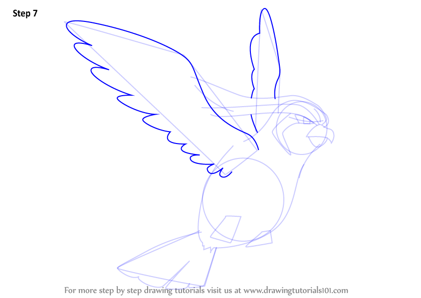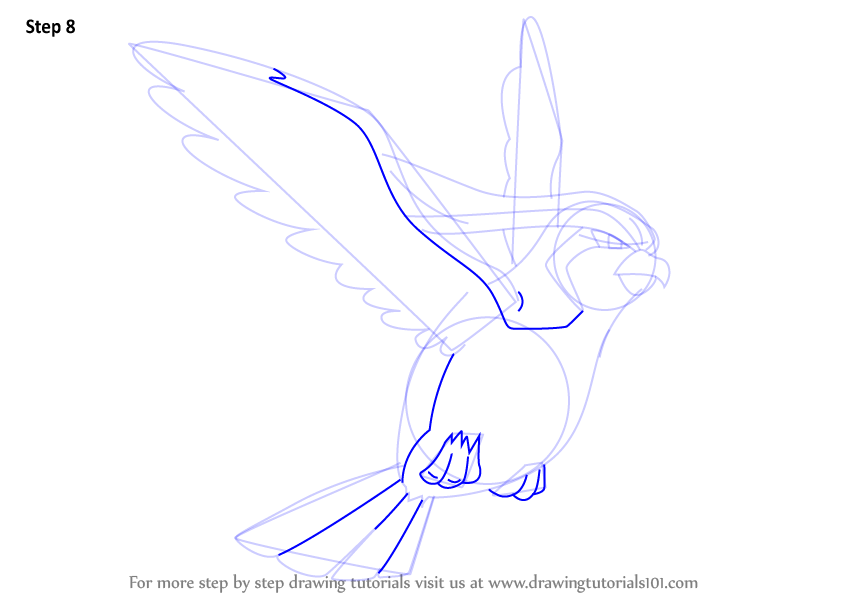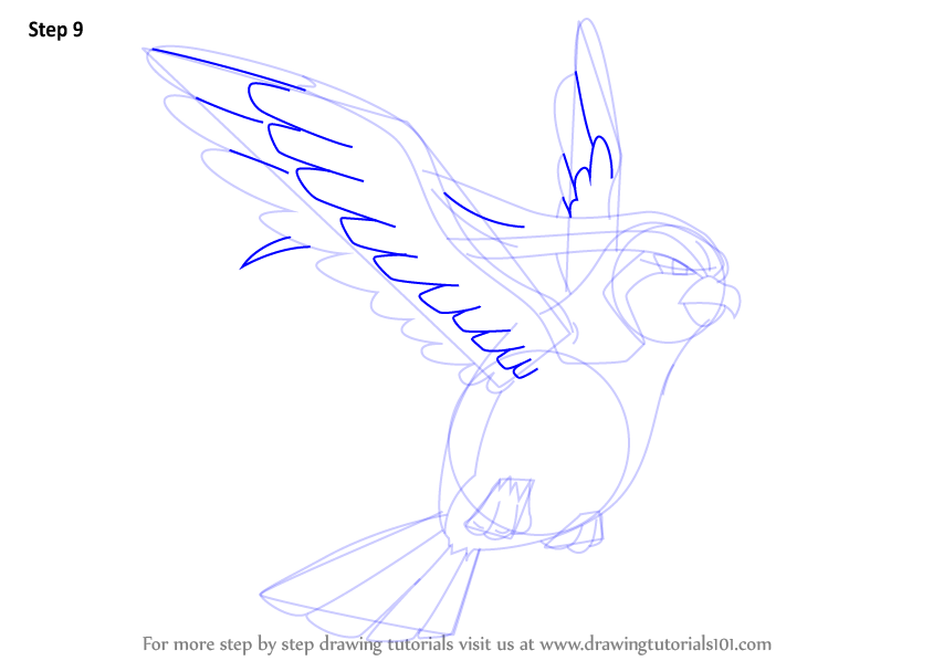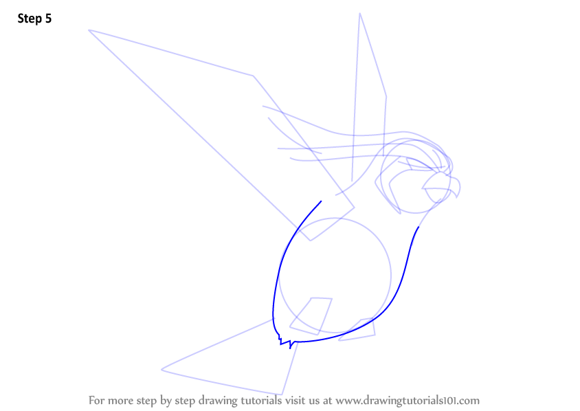 Draw outline for wings, tail & legs.