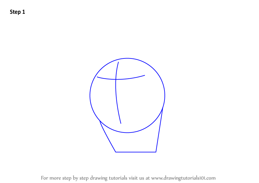 First start the tutorial by drawing an oval & curve lines intersecting each other inside the oval. Also draw half rectangle just below the oval as shown.