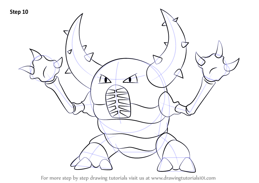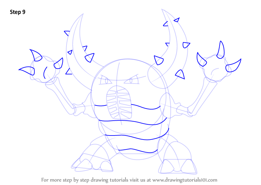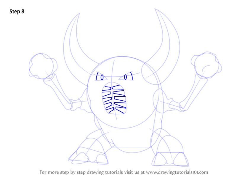 Draw small triangle shapes all over the arms and horns as shown.