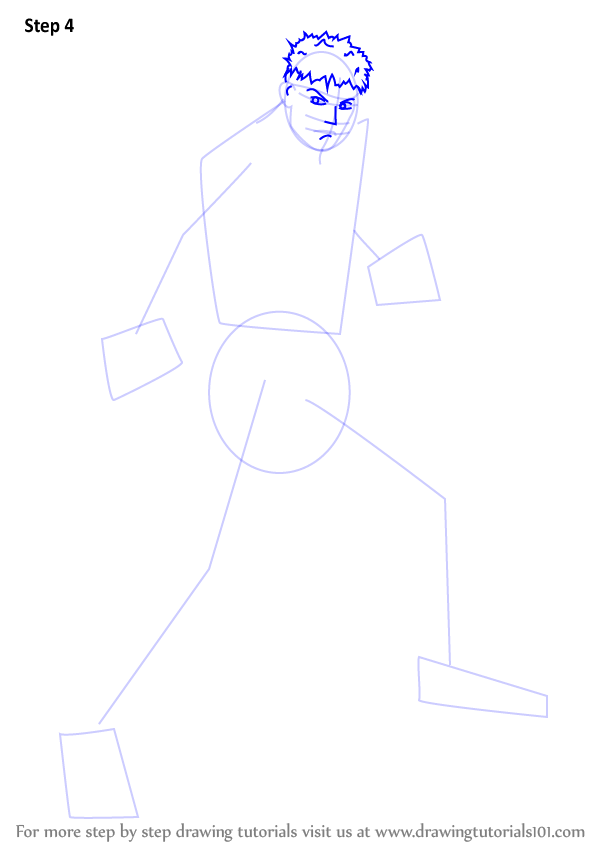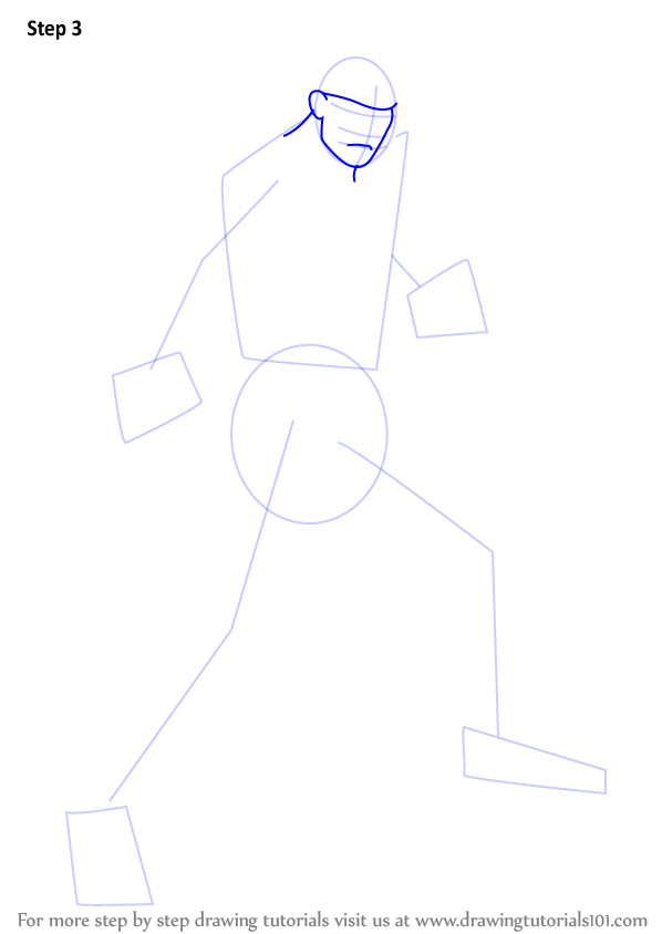 Draw outline for arms, hands, legs & feet.