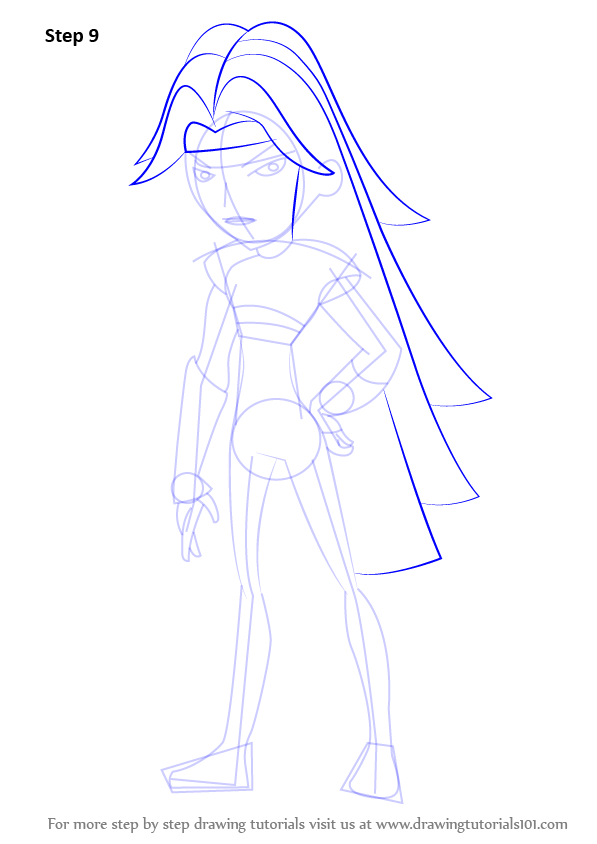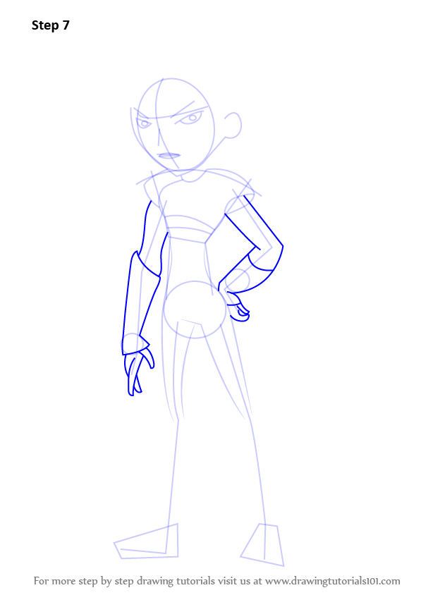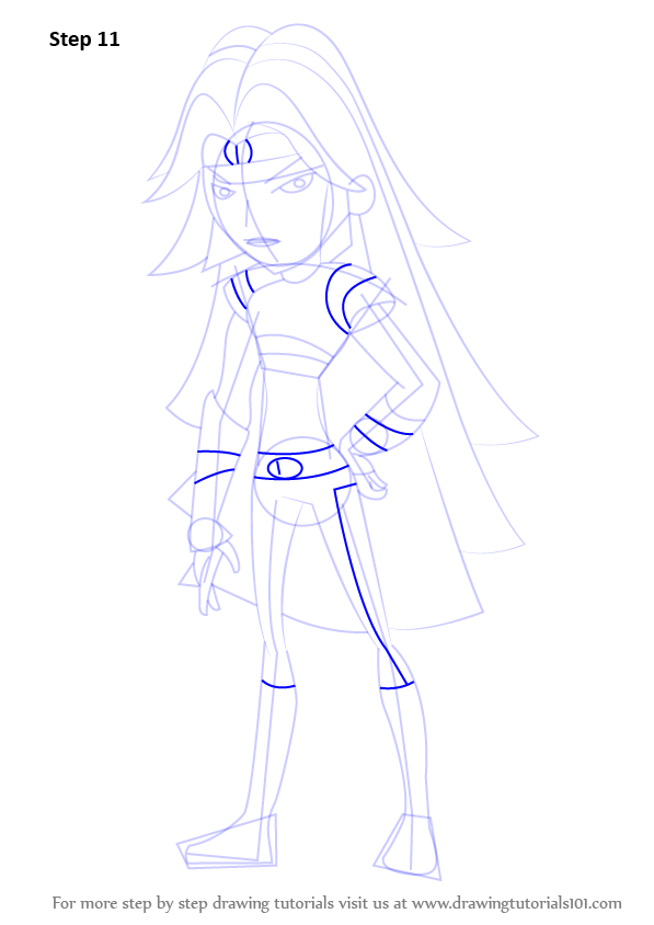 Enhance dressing by drawing the belt and making several lines over the arms and legs. Do not forget a small circle over the forehead.
