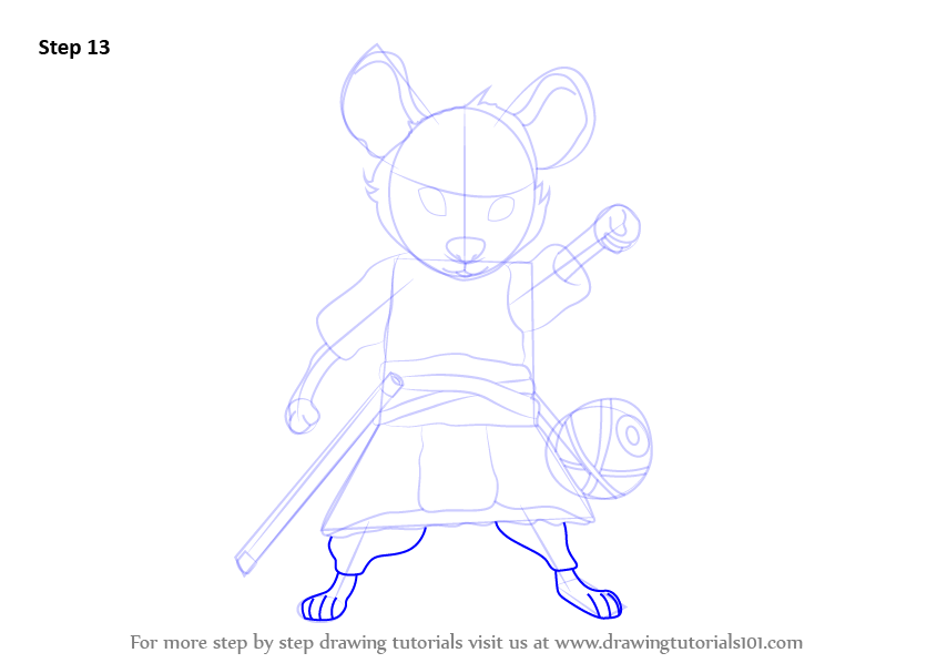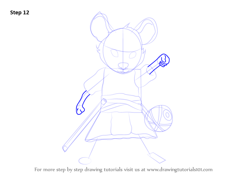 Draw outlines for stick one side & ears. Also draw a circle.