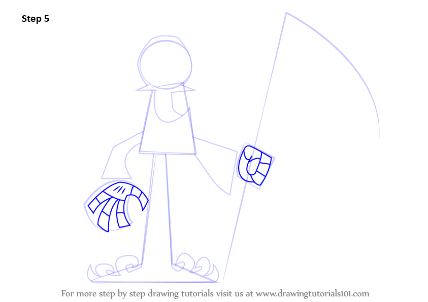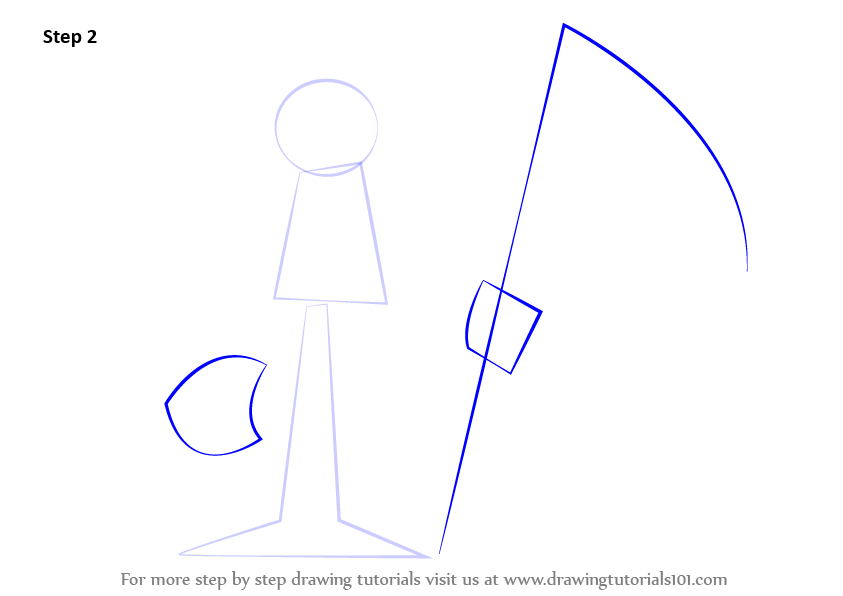 Draw the other elements like the hands and the long axe as shown.