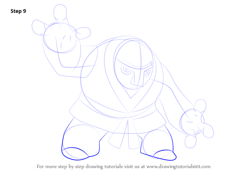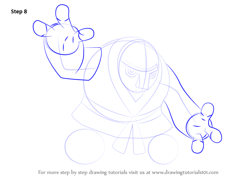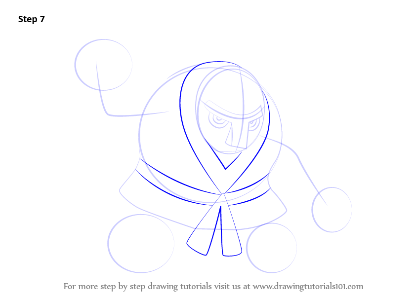 Draw lines over the arms, head and face as shown.
