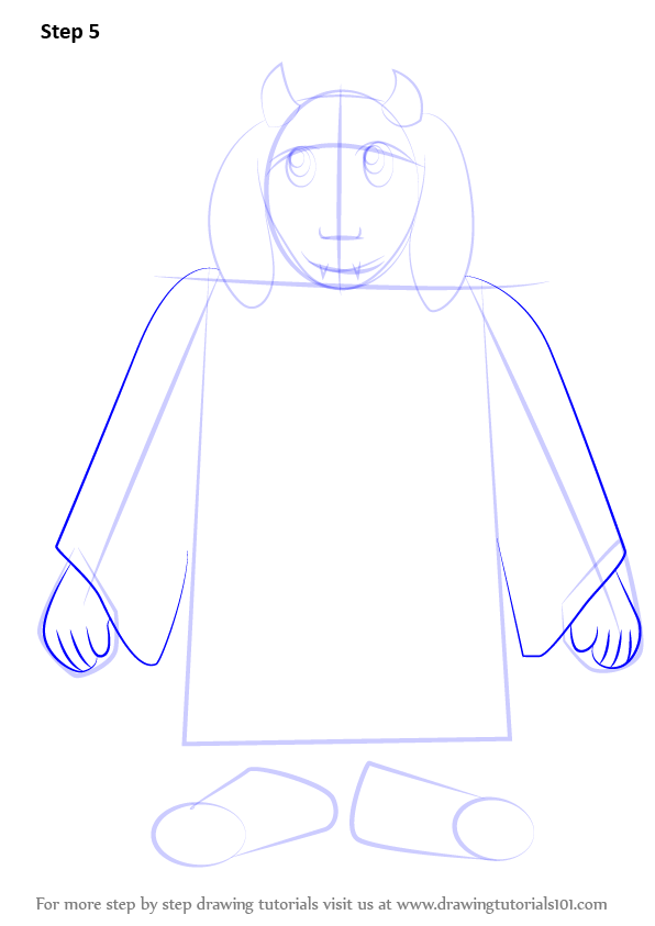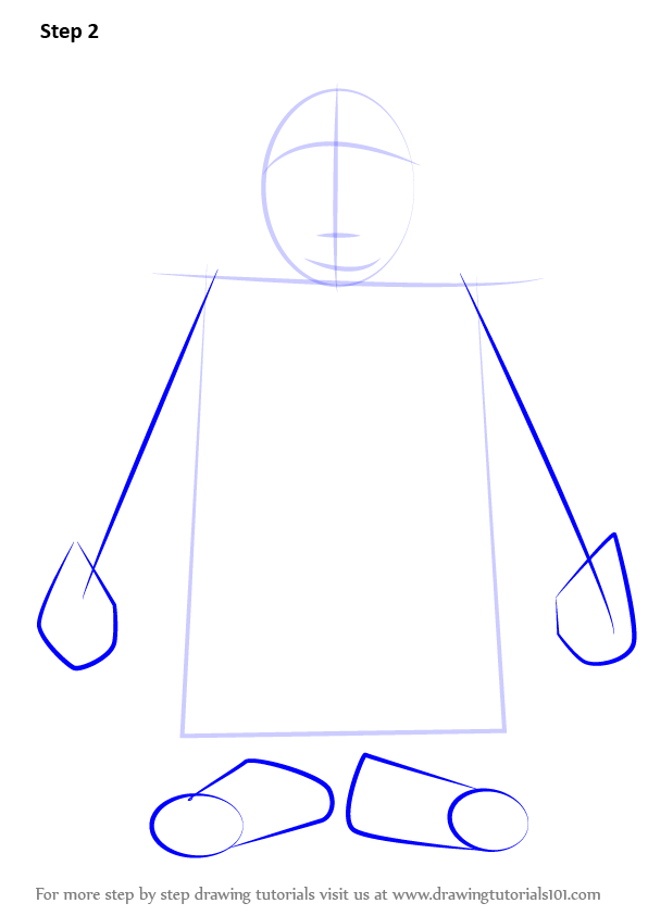 Draw outline for arms, hands, legs & feet.
