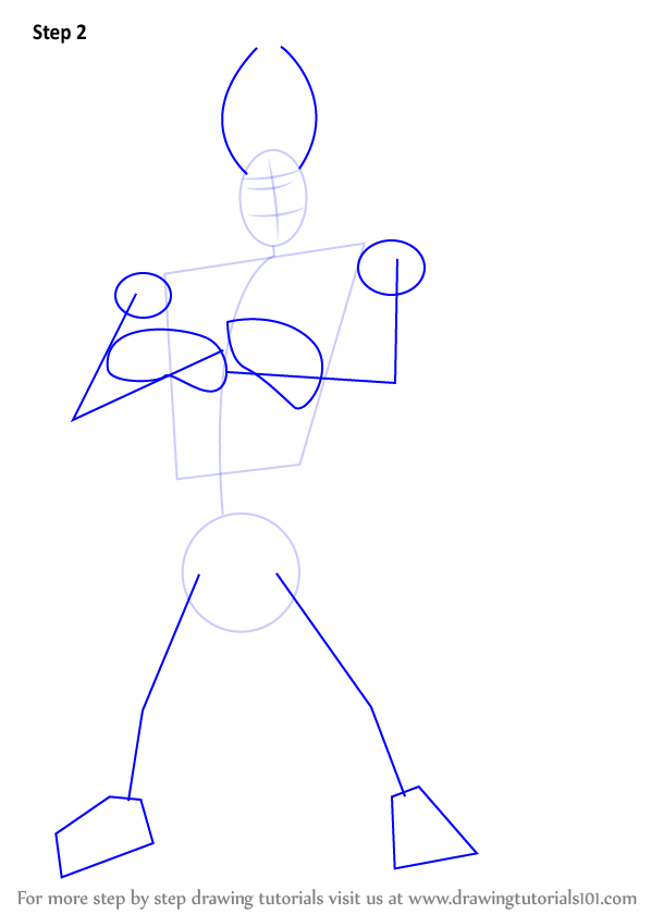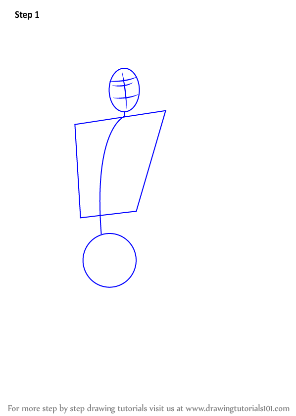Draw an oval, a circle & shape for the upper body.