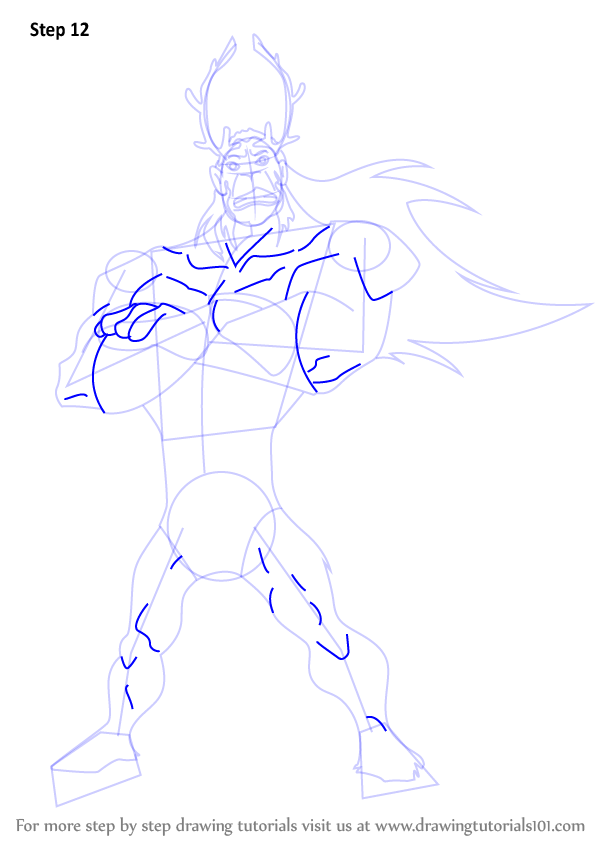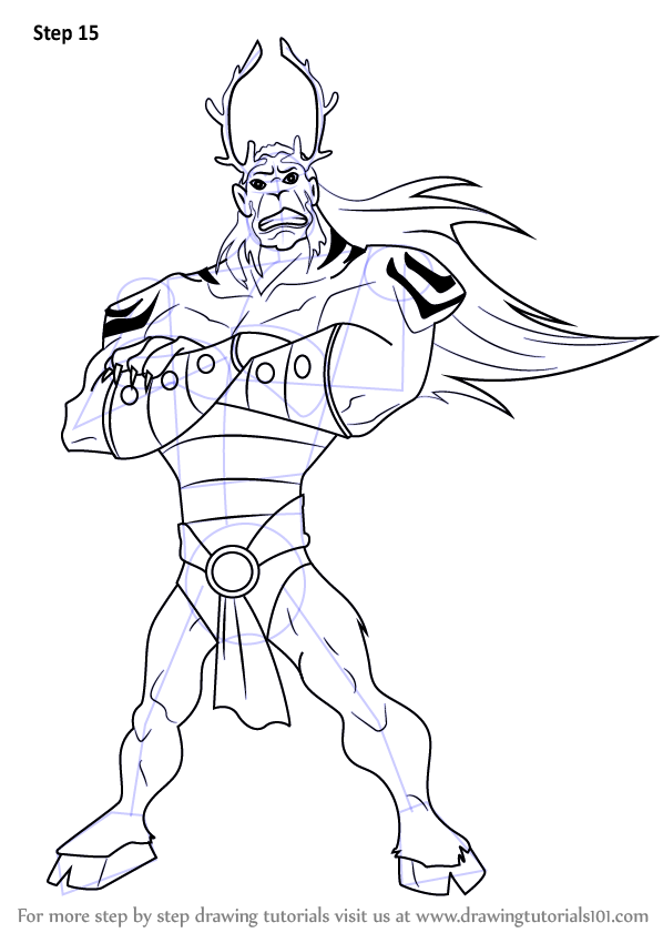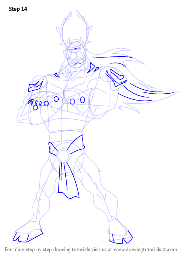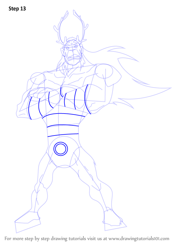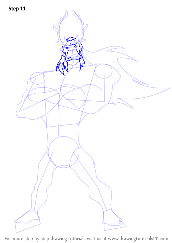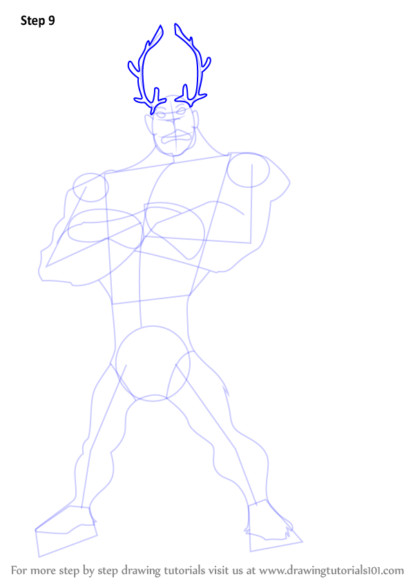 Draw outlines for arms, hands, legs, feet & horn.