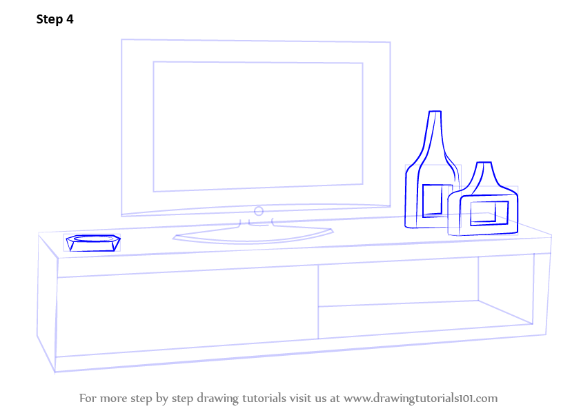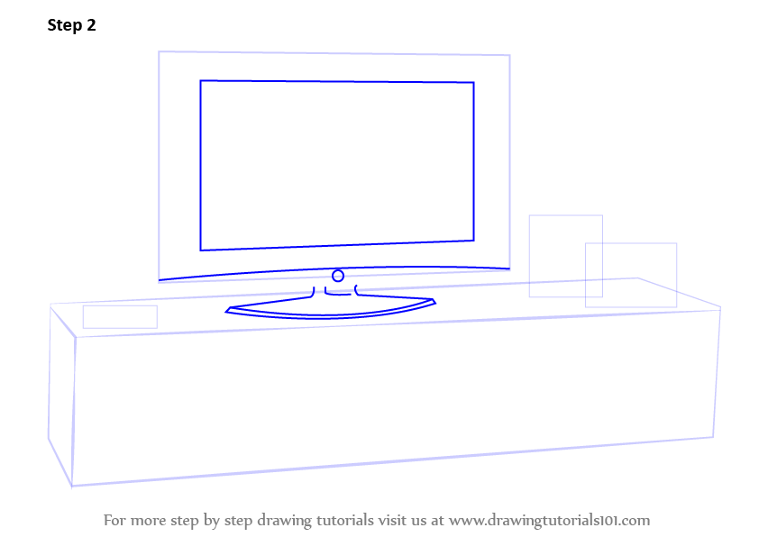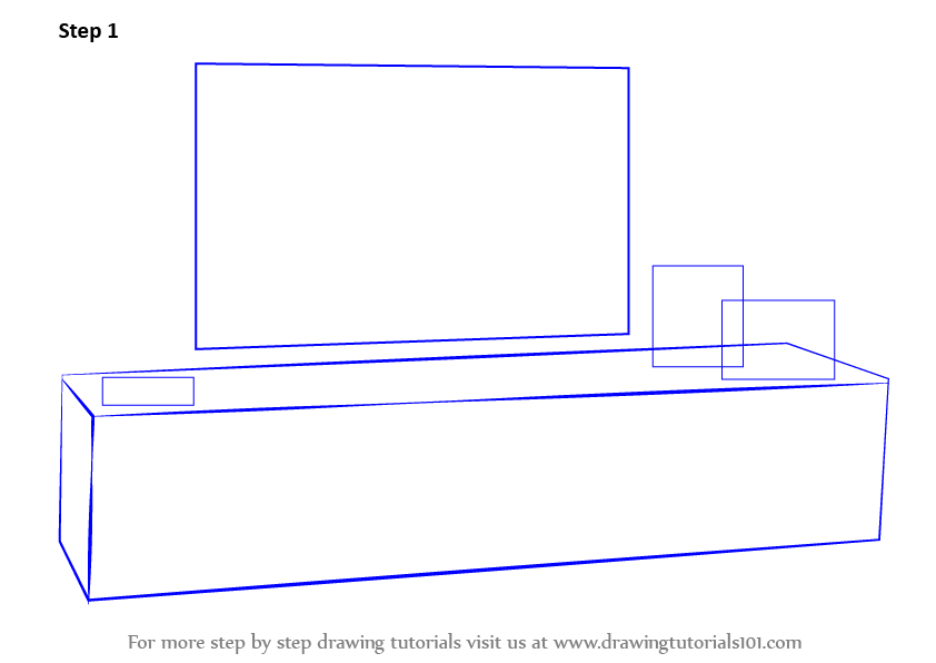 Draw the lower base in 3-D and the above rectangle for the representational TV to fit in.