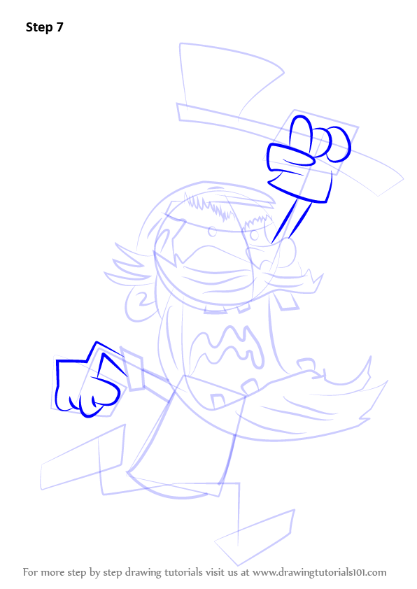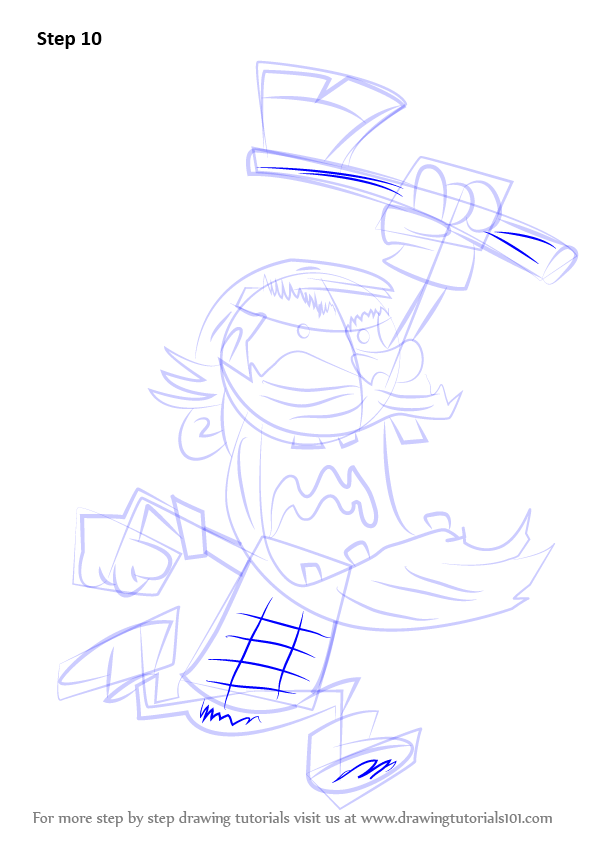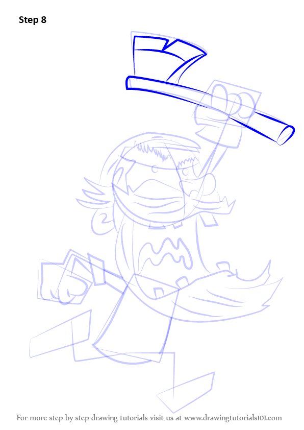 Draw outline for arms, hands, legs, feet & axe as shown.