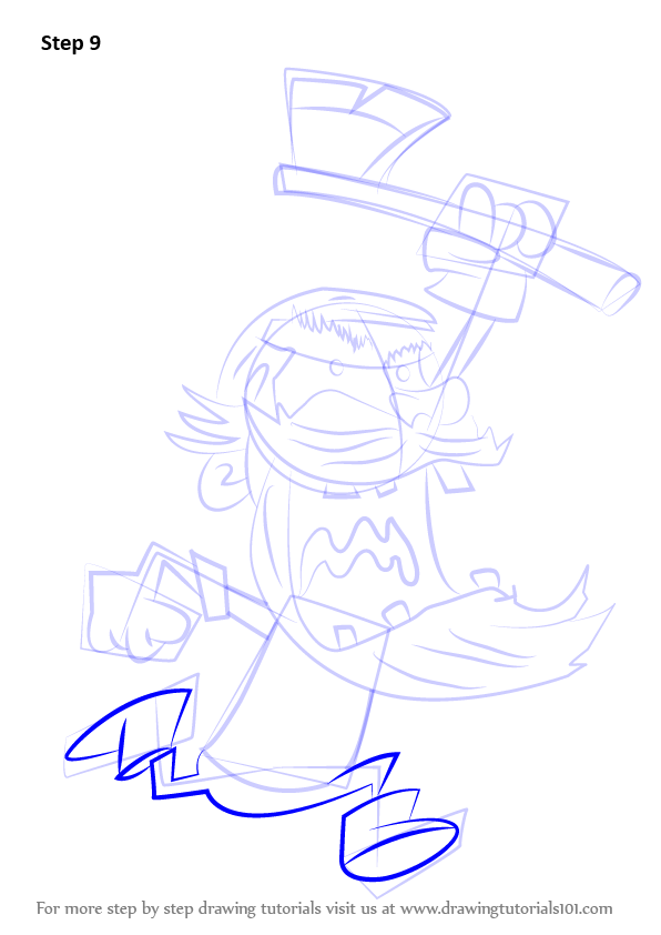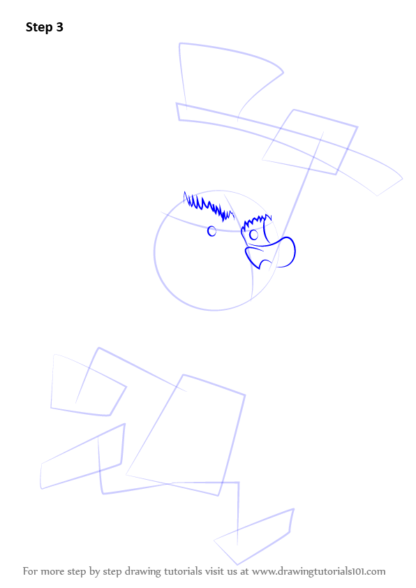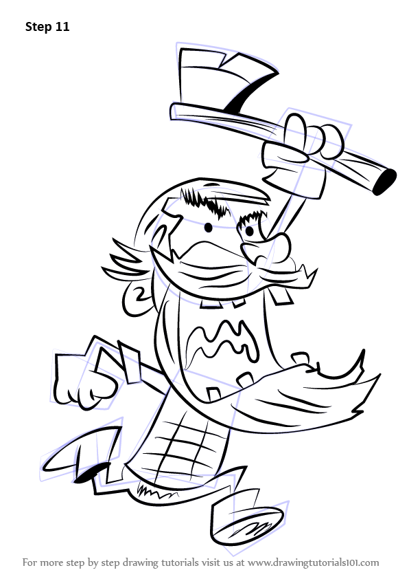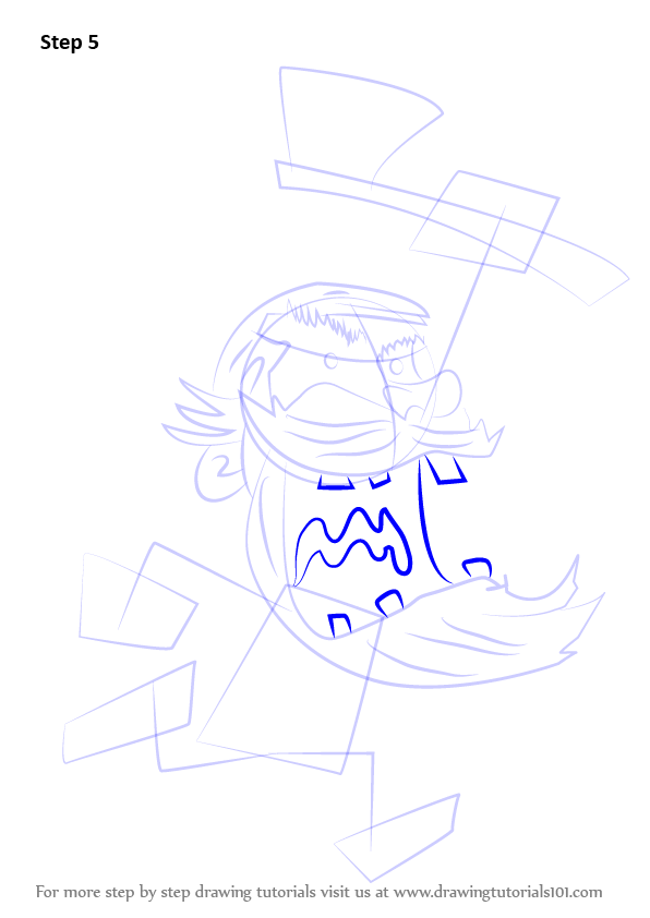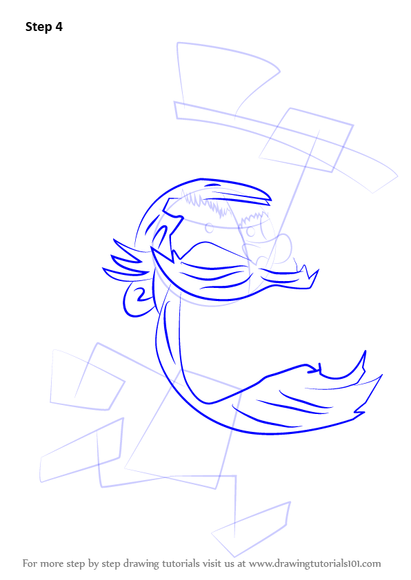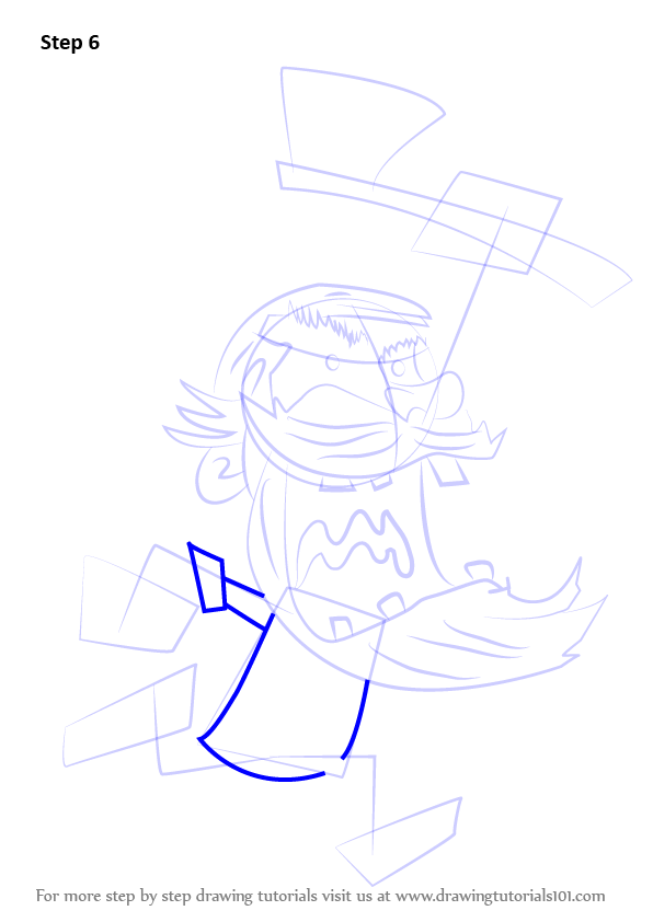 Draw lines over the dress and axe as shown.