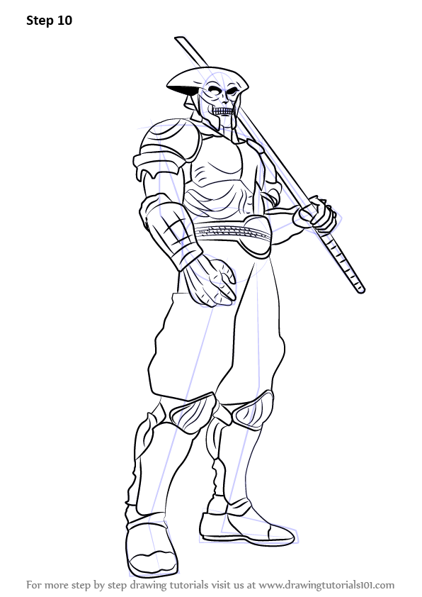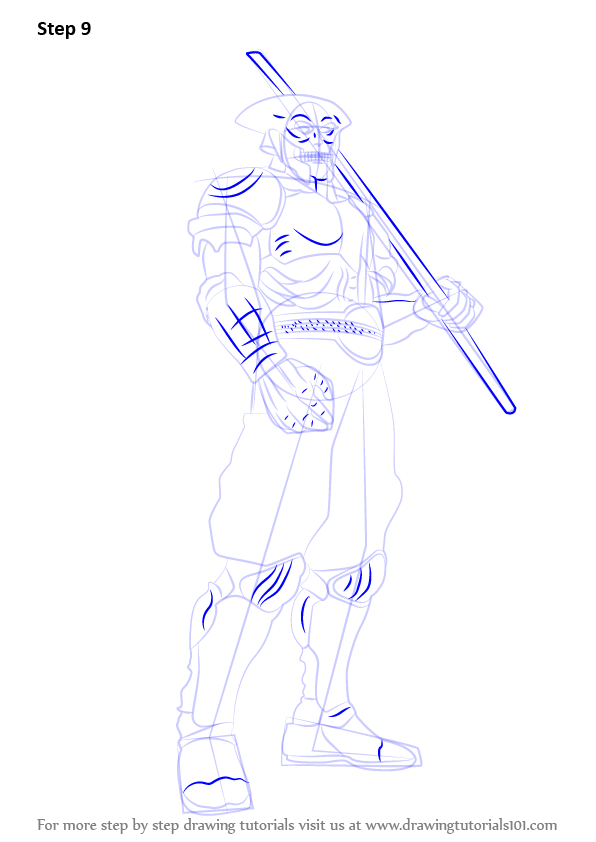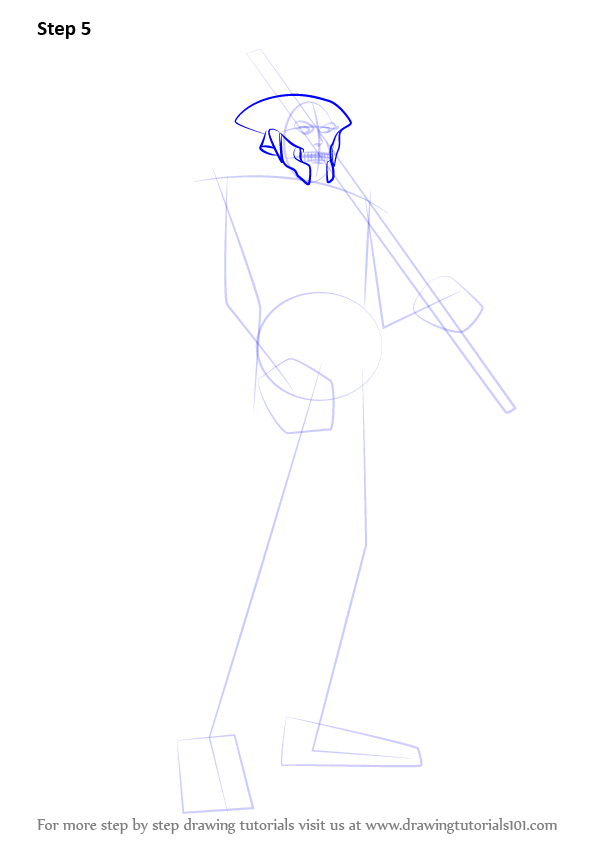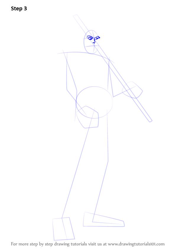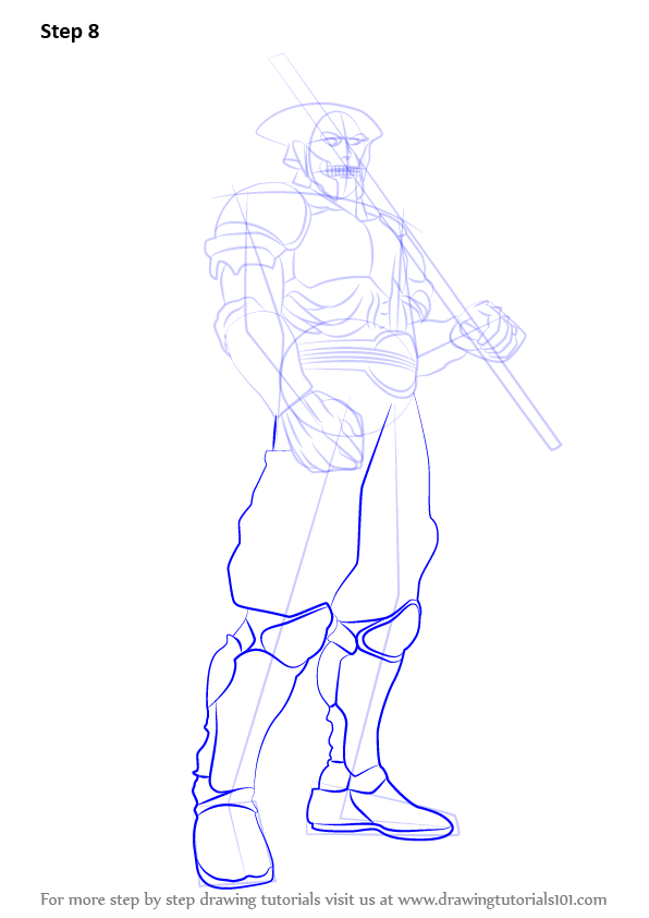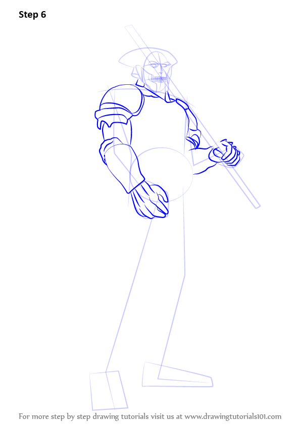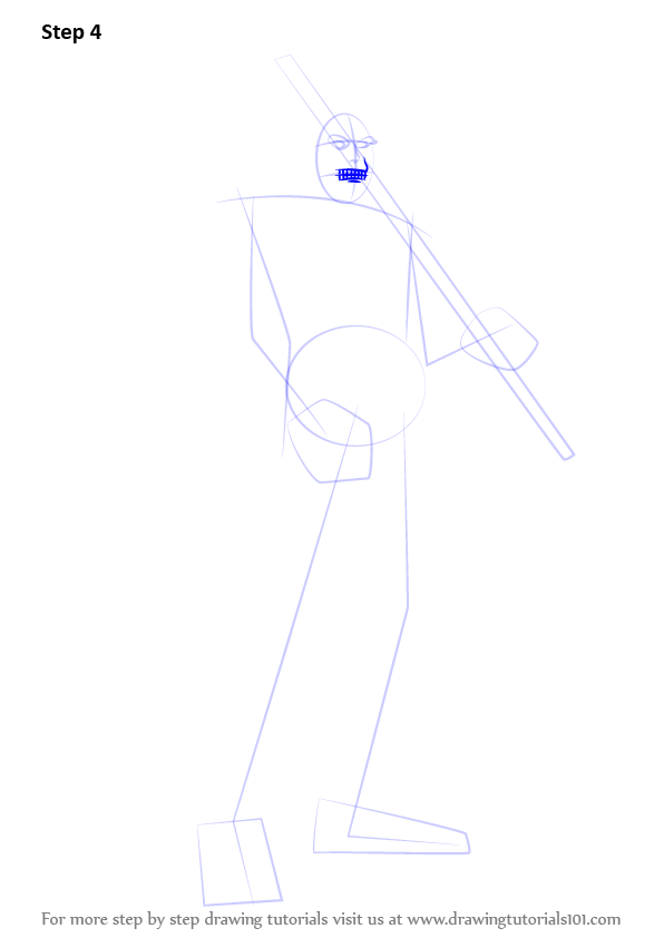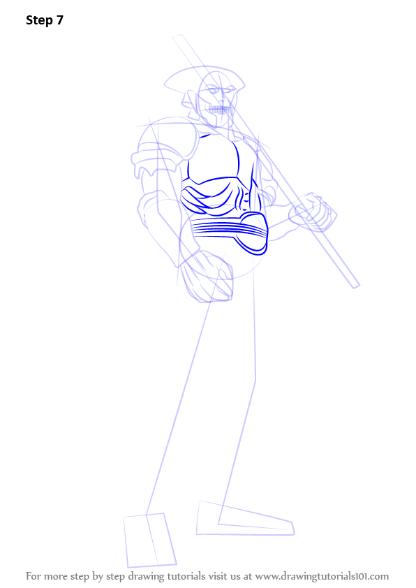 Draw outline for arms, hands, legs, feet & sword as shown.